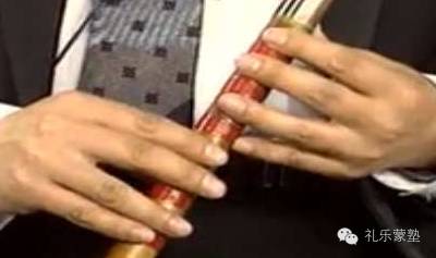 2、当气息冲出时,只让出小空隙使气息通过,并使成为一束气柱往吹孔下方斜着吹去。