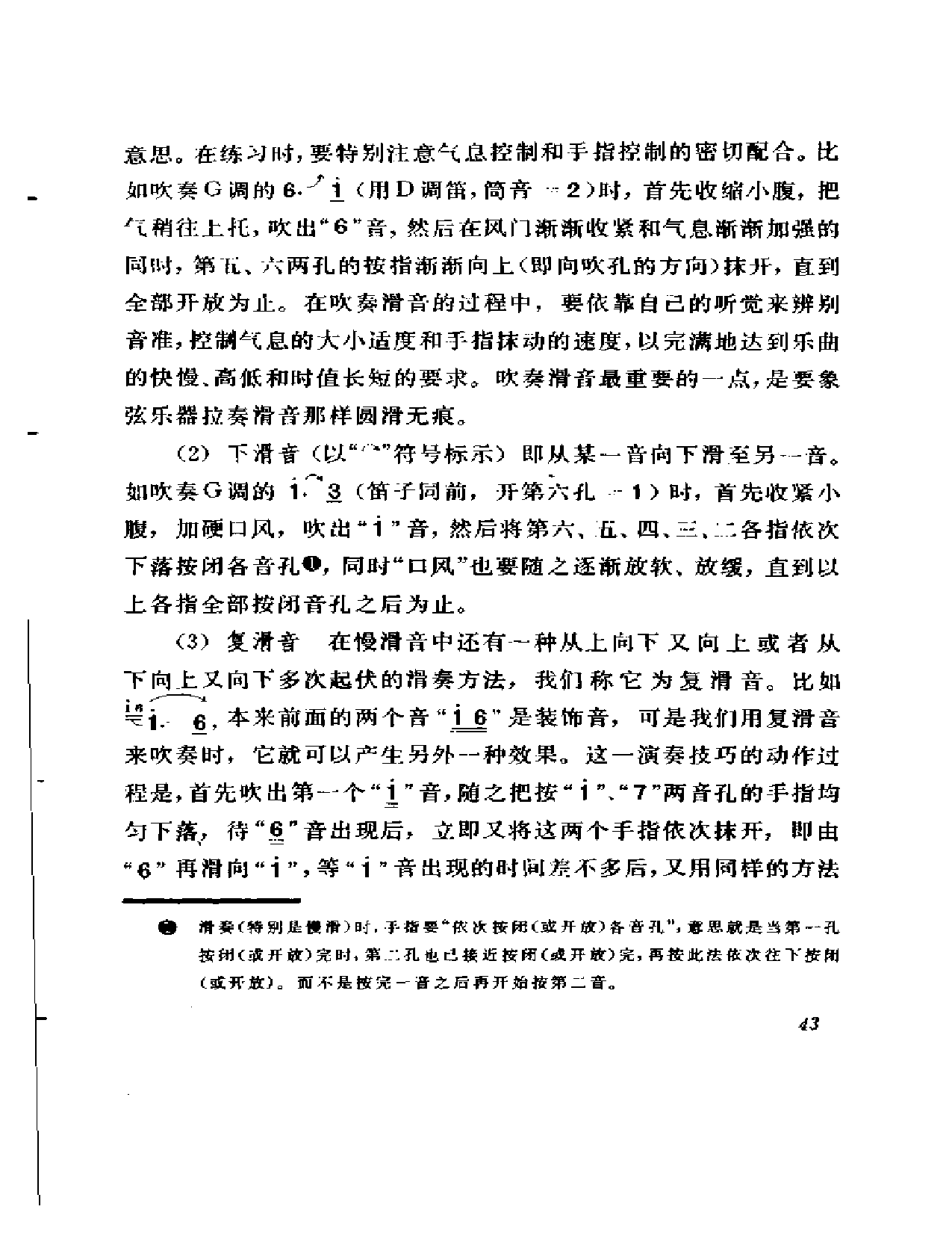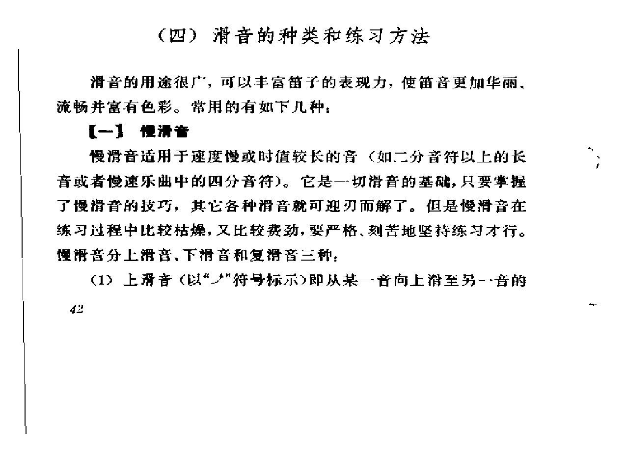 滑音的用途很广,可以丰富笛子的表现力,使笛音更加华丽、流畅并富有色彩。常用的有如下几种: