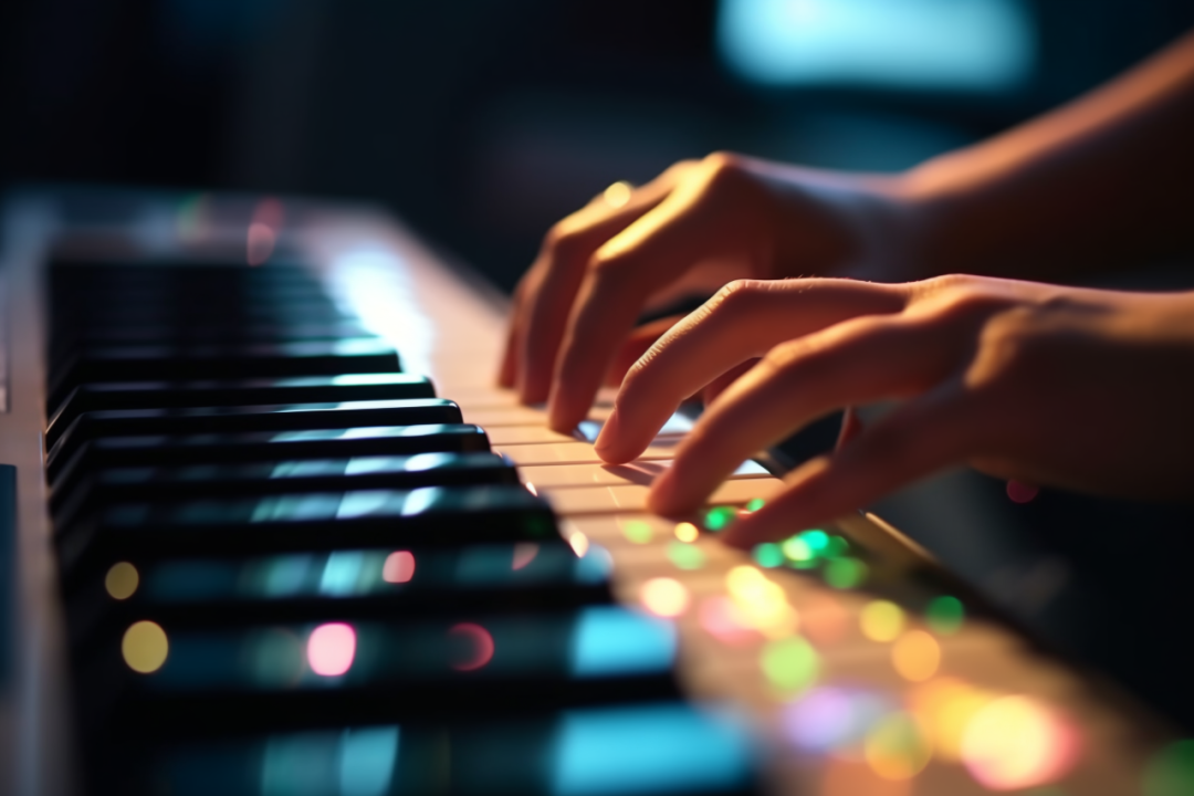 三、关于琶音练习琶音具有一定的曲调性,它常常作为旋律片段出现在音乐作品中。琶音又是和弦的另一种横向表现形式,常常作为伴奏背景来烘托主要旋律。因此,琶音在指法的基本训练中也是举足轻重的。在和弦指法练习中接触的各类和弦,在琶音的练习中都要接触到。在琶音的练习中,要尽量地突破传统孤立的和弦模式,要结合调式,结合电子琴演奏特色,灵活地运用多种方法。如配合调式练习各种常用七和弦。为了加强练习的趣味性,可以用电子琴中的钢琴、竖琴、钟琴一类的音色,使琶音的演奏效果更加清澈动听。