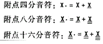 其他音符均是在四分音符的基础上,用加记短横线"-"和附点"·"表示。