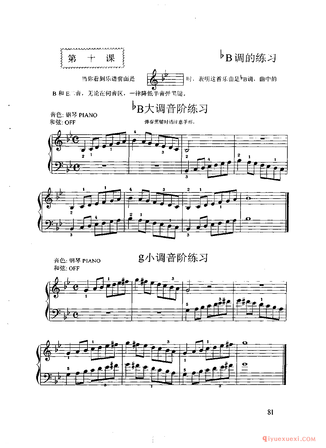 电子琴bB调练习:bB大调音阶练习/g小调音阶练习