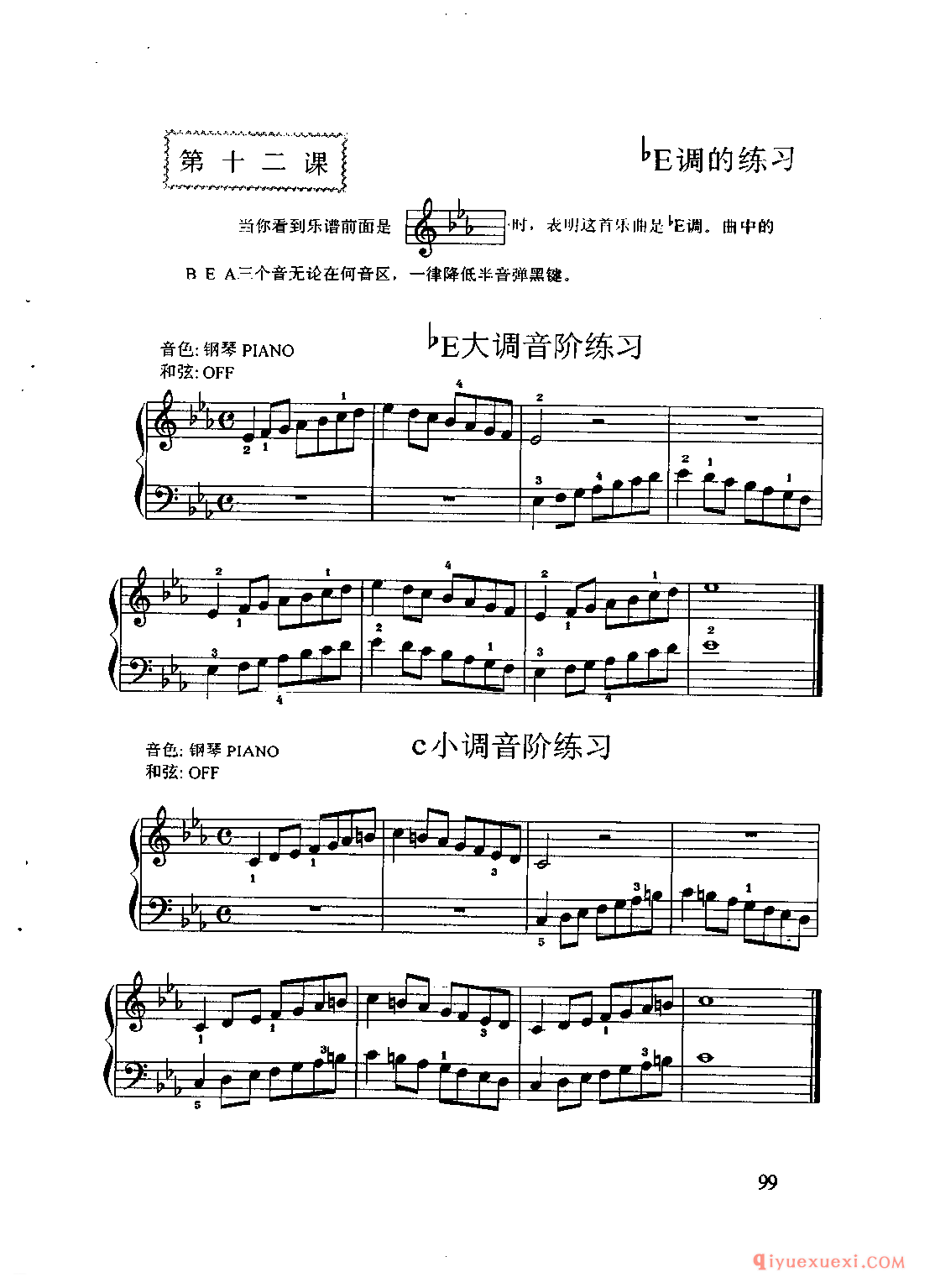 电子琴bE调练习:E大调音阶练习、c小调音阶练习