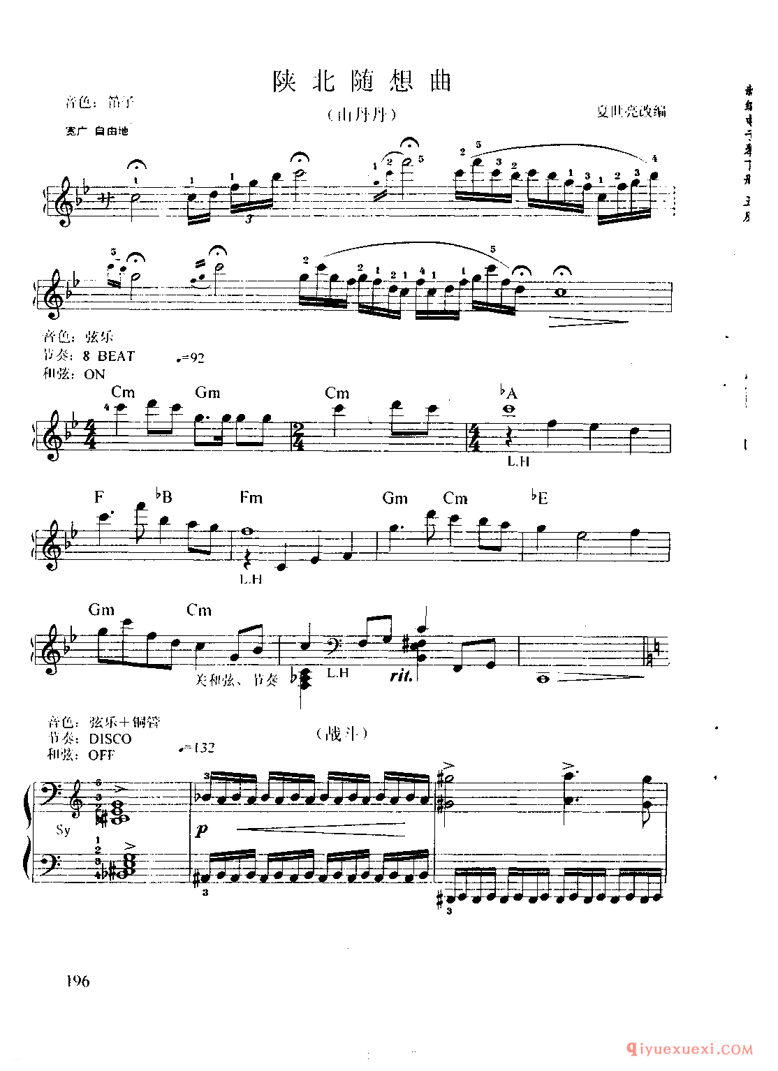 电子琴独奏曲谱【陕北随想曲】五线谱带和弦高清电子版乐谱歌词图片是器乐学习网于2022年07月16日 19:36:43更新分享的电子琴曲谱;资源收录于电子琴曲谱栏目中;器乐学习网免费分享电子琴独奏曲谱【陕北随想曲】五线谱带和弦简谱与五线谱歌谱图片,欢迎在线免费下载;器乐学习网无需注册会员,直接免费下载各类乐器学习资源及乐谱。