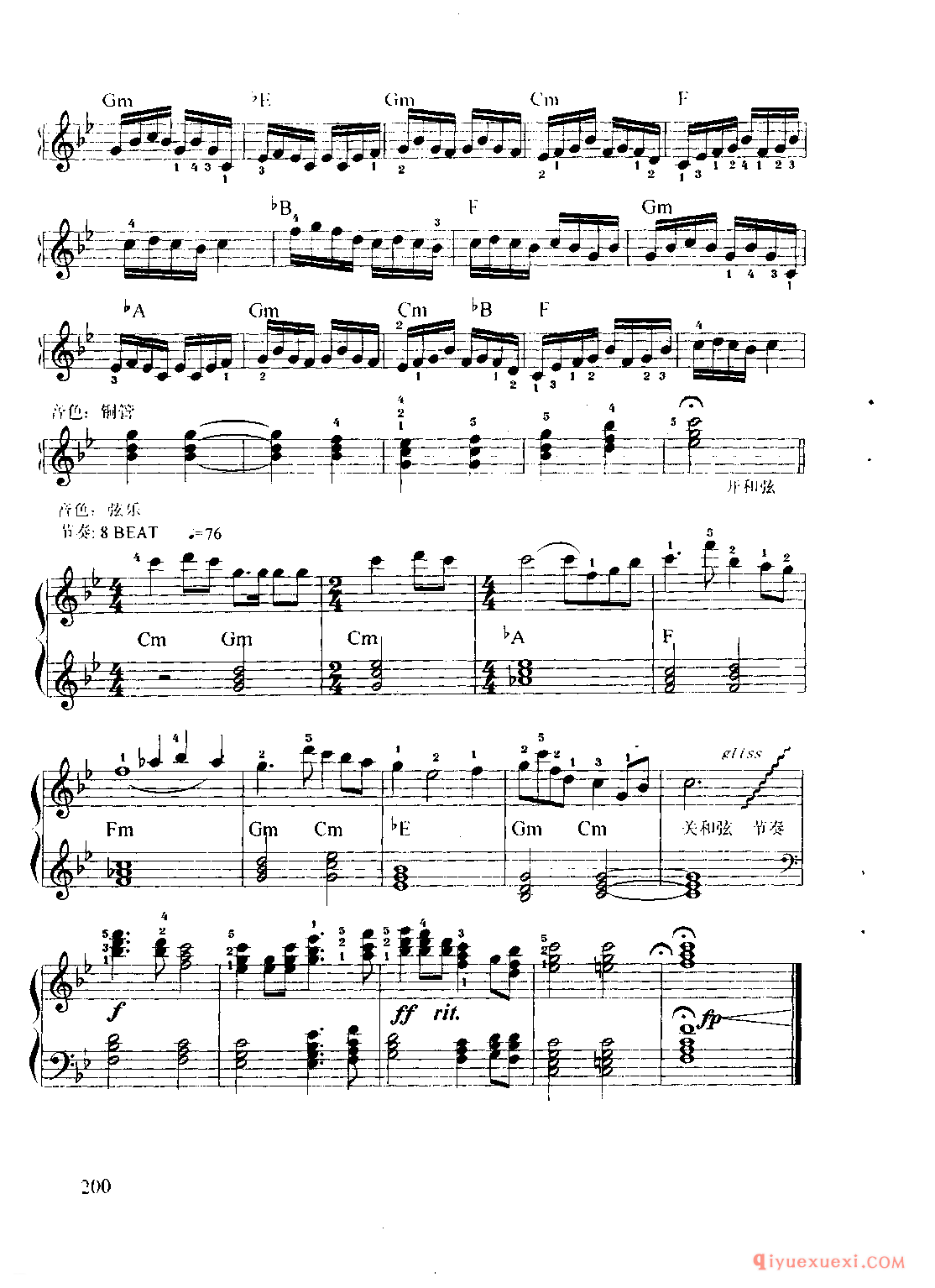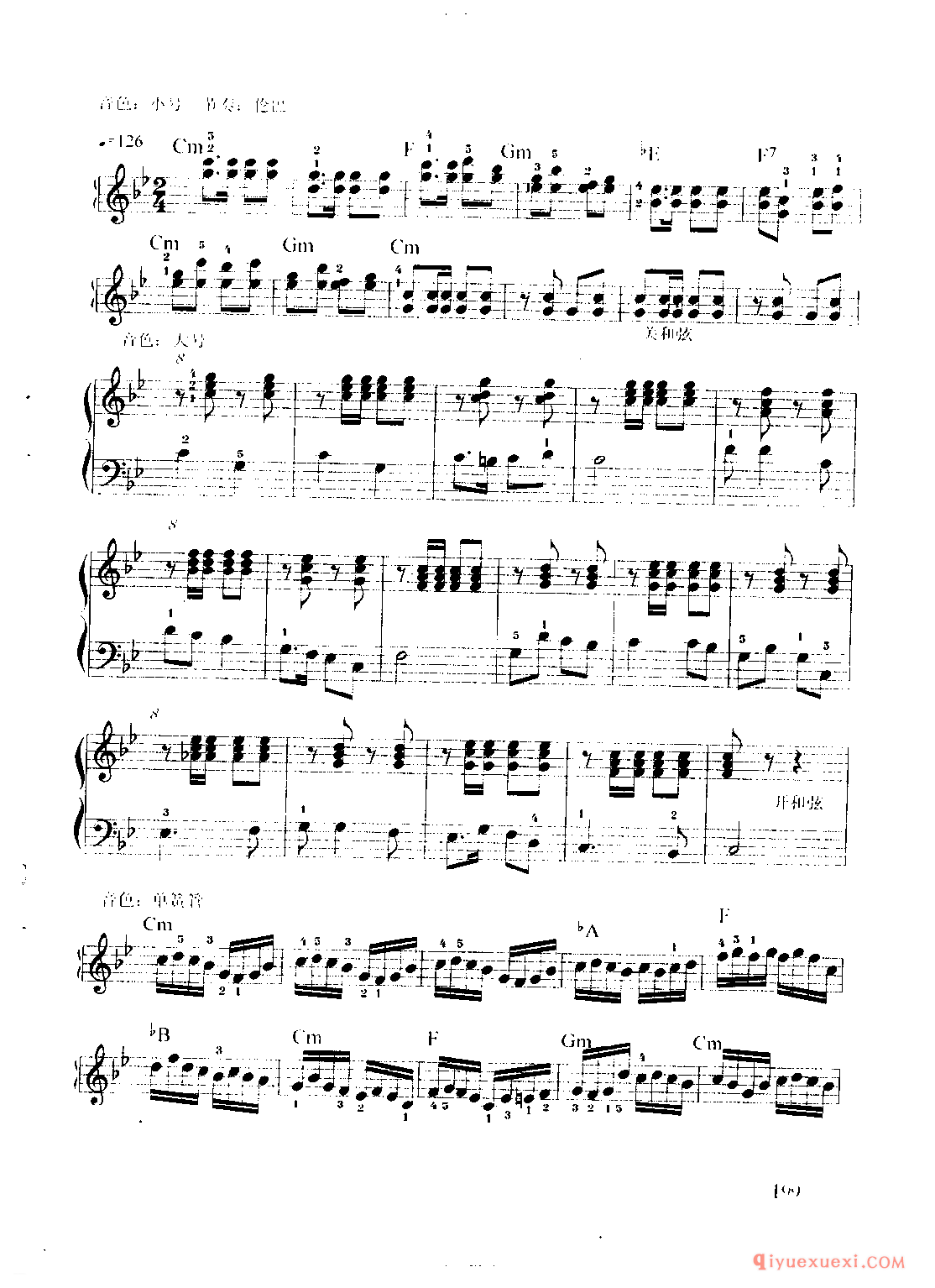 电子琴独奏曲谱【陕北随想曲】五线谱带和弦