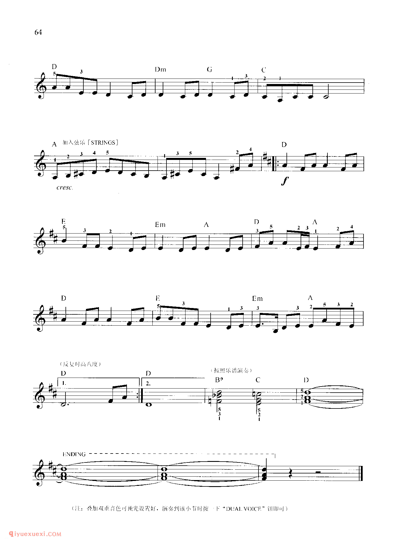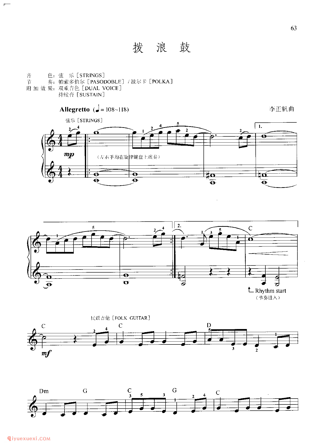 电子琴演奏曲《波浪鼓》五线谱带和弦