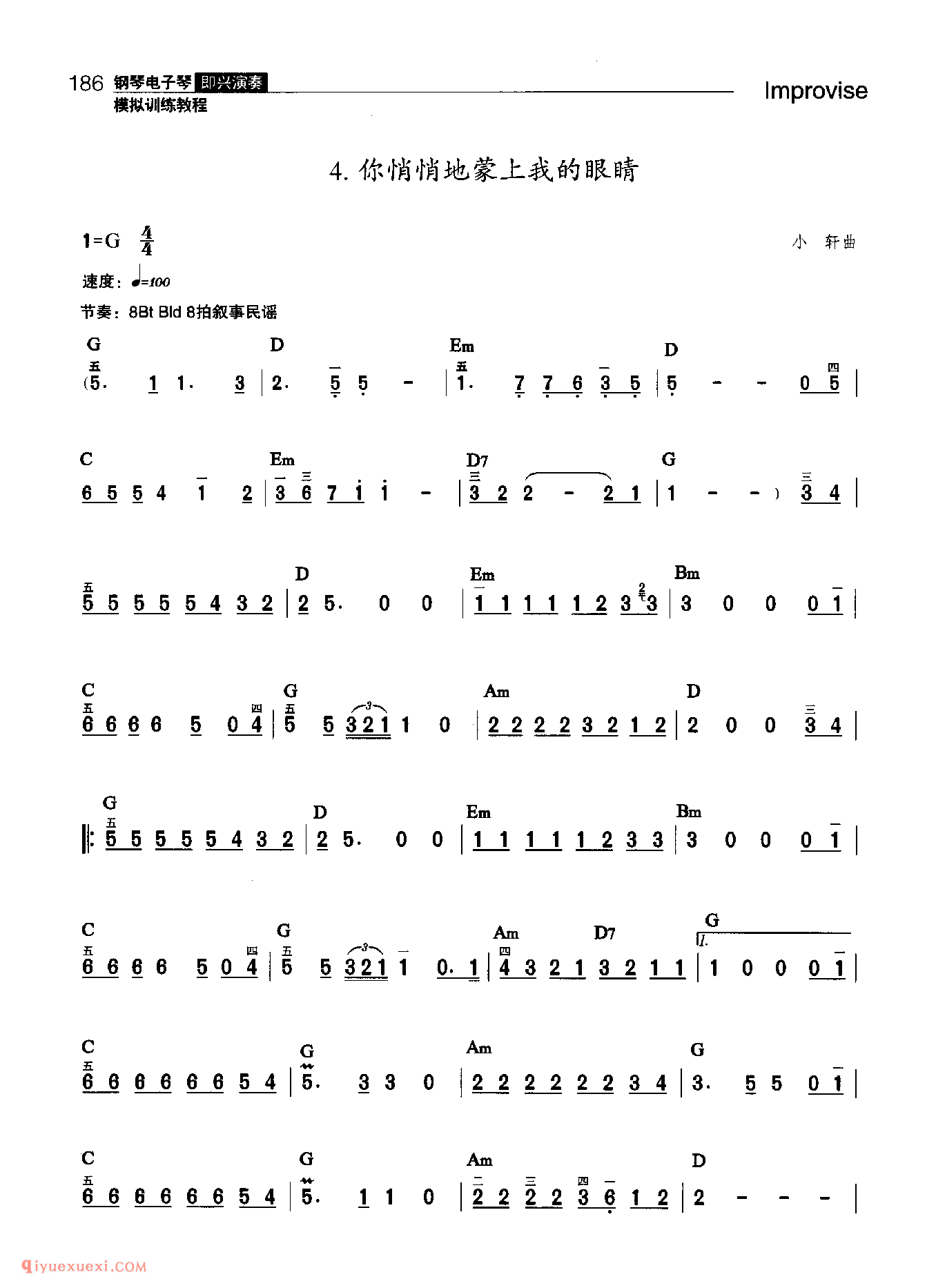 间奏、尾奏编配练习 | 你悄悄地蒙上我的眼睛 五线谱
