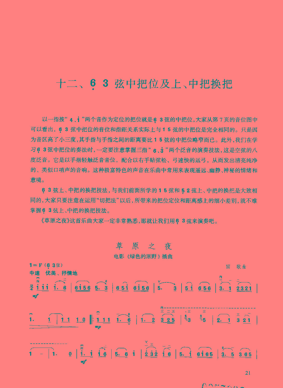 《草原之夜》这首乐曲大家一定非常熟悉,那就让我们用3弦来演奏吧。