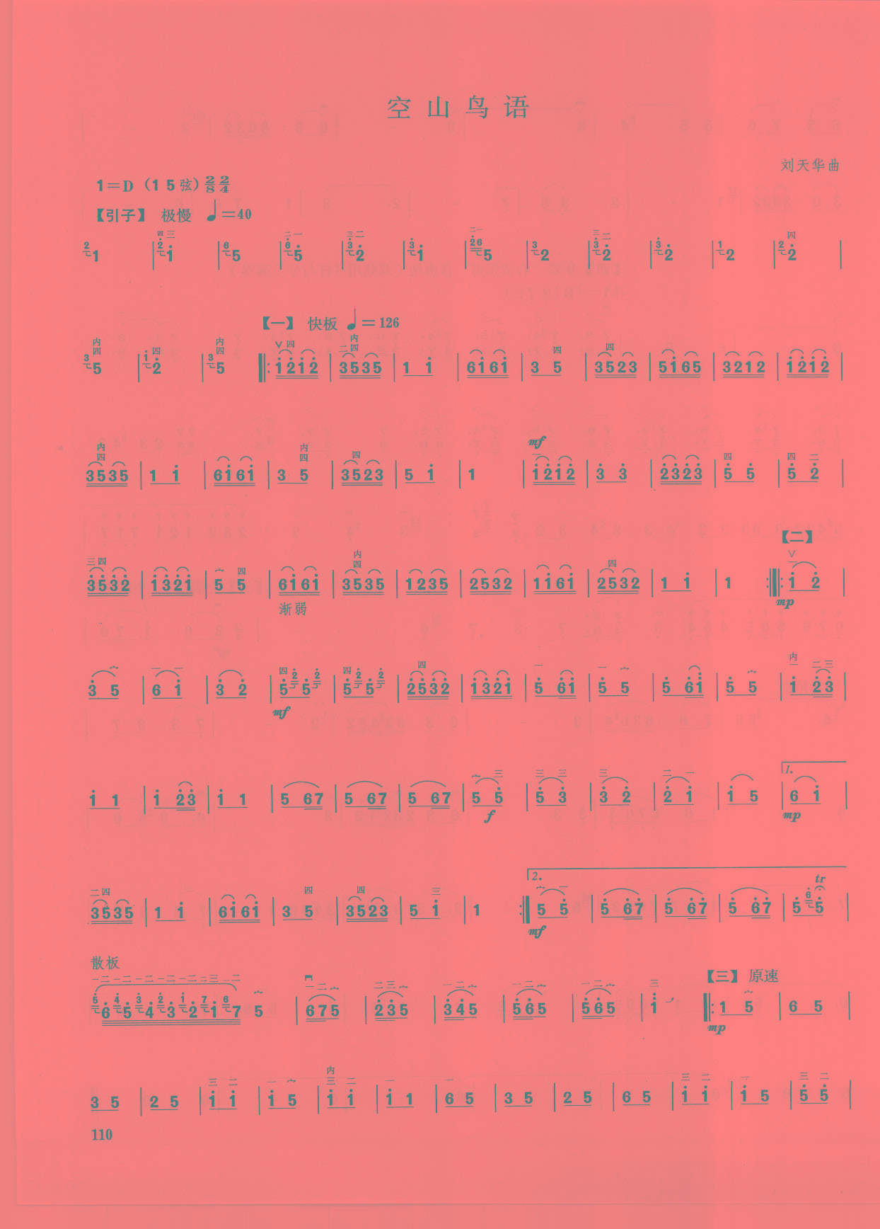 二胡考级七级乐曲谱《空山鸟语》刘天华曲
