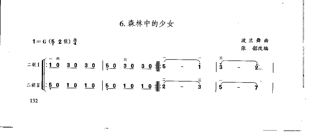 二胡重奏练习谱:森林中的少女&波兰舞曲 张韶改编