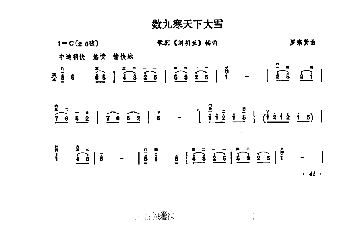 二胡谱(革命传统歌曲)数九寒天下大雪 罗宗贤曲
