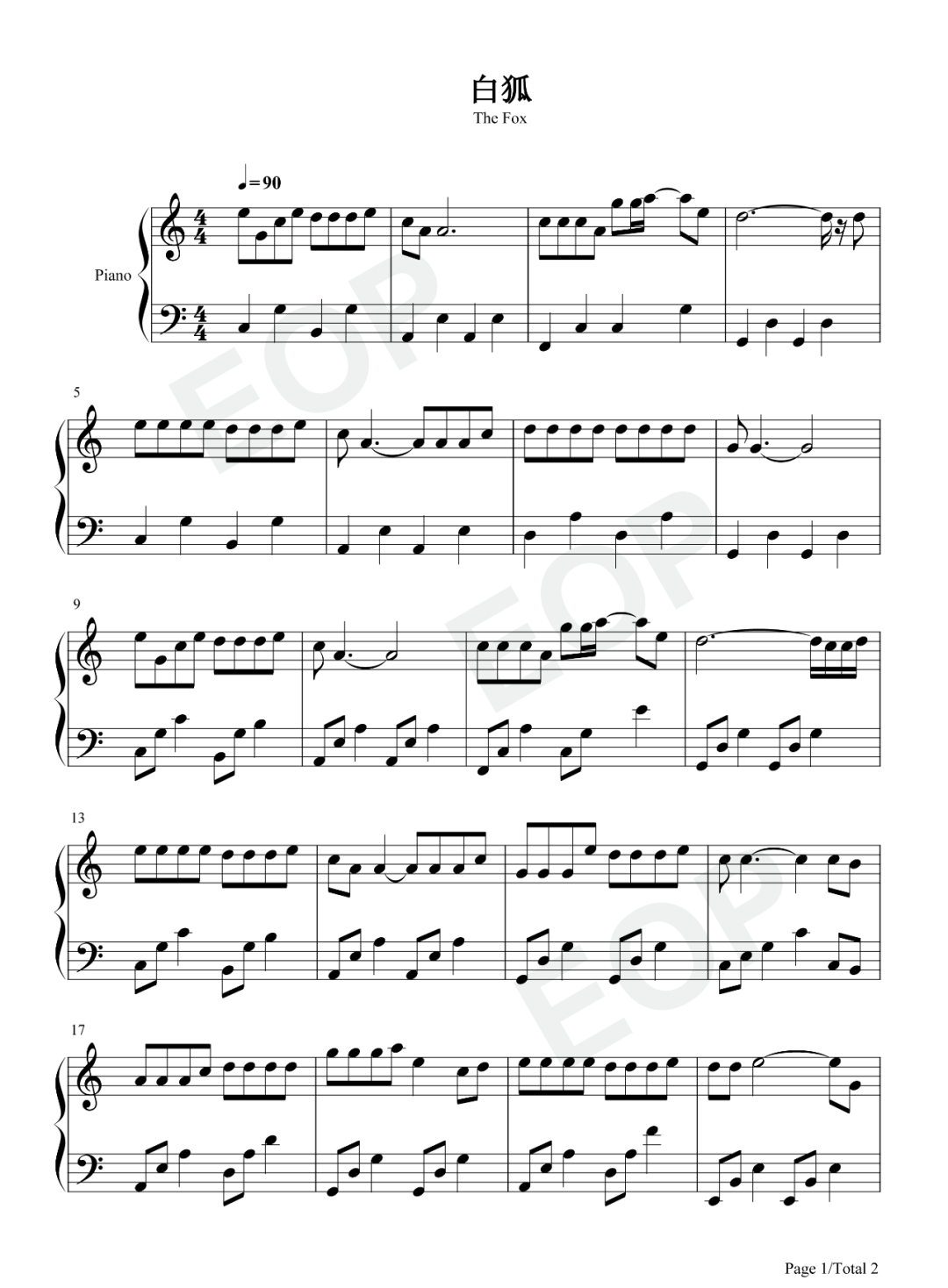 钢琴谱 | 白狐高清电子版乐谱歌词图片是器乐学习网于2024年06月29日 10:50:06更新分享的钢琴曲谱;资源收录于钢琴曲谱栏目中;器乐学习网免费分享钢琴谱 | 白狐简谱与五线谱歌谱图片,欢迎在线免费下载;器乐学习网无需注册会员,直接免费下载各类乐器学习资源及乐谱。