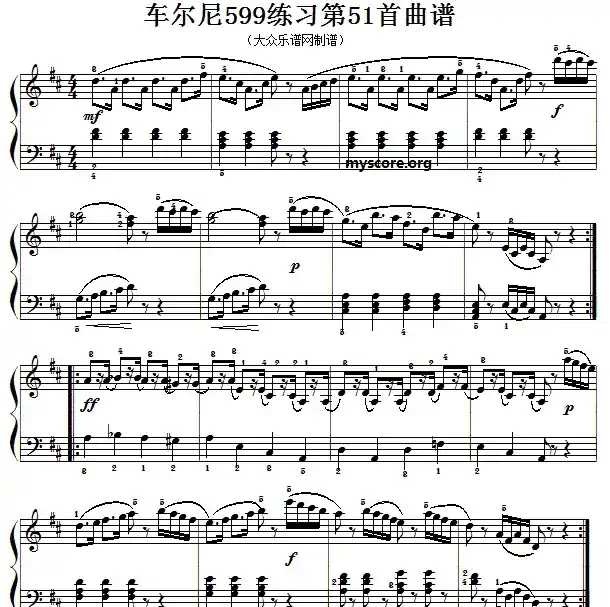 车尔尼599第51首曲谱及练习指导钢琴乐曲谱,车尔尼599第51首曲谱及练习指导钢琴简谱五线谱图片