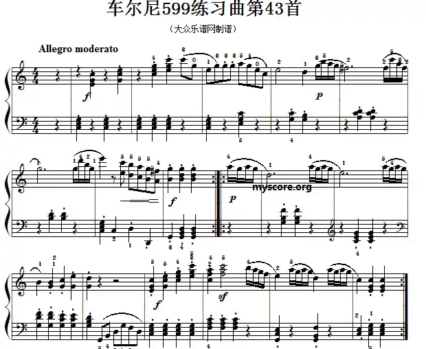 车尔尼599第43首曲谱及练习指导钢琴乐曲谱,车尔尼599第43首曲谱及练习指导钢琴简谱五线谱图片