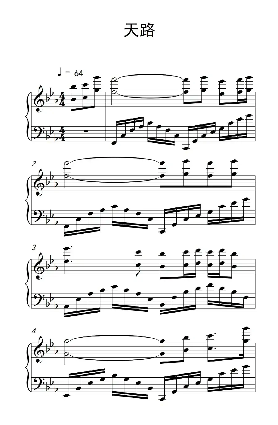 天路钢琴乐曲谱,天路钢琴简谱五线谱图片