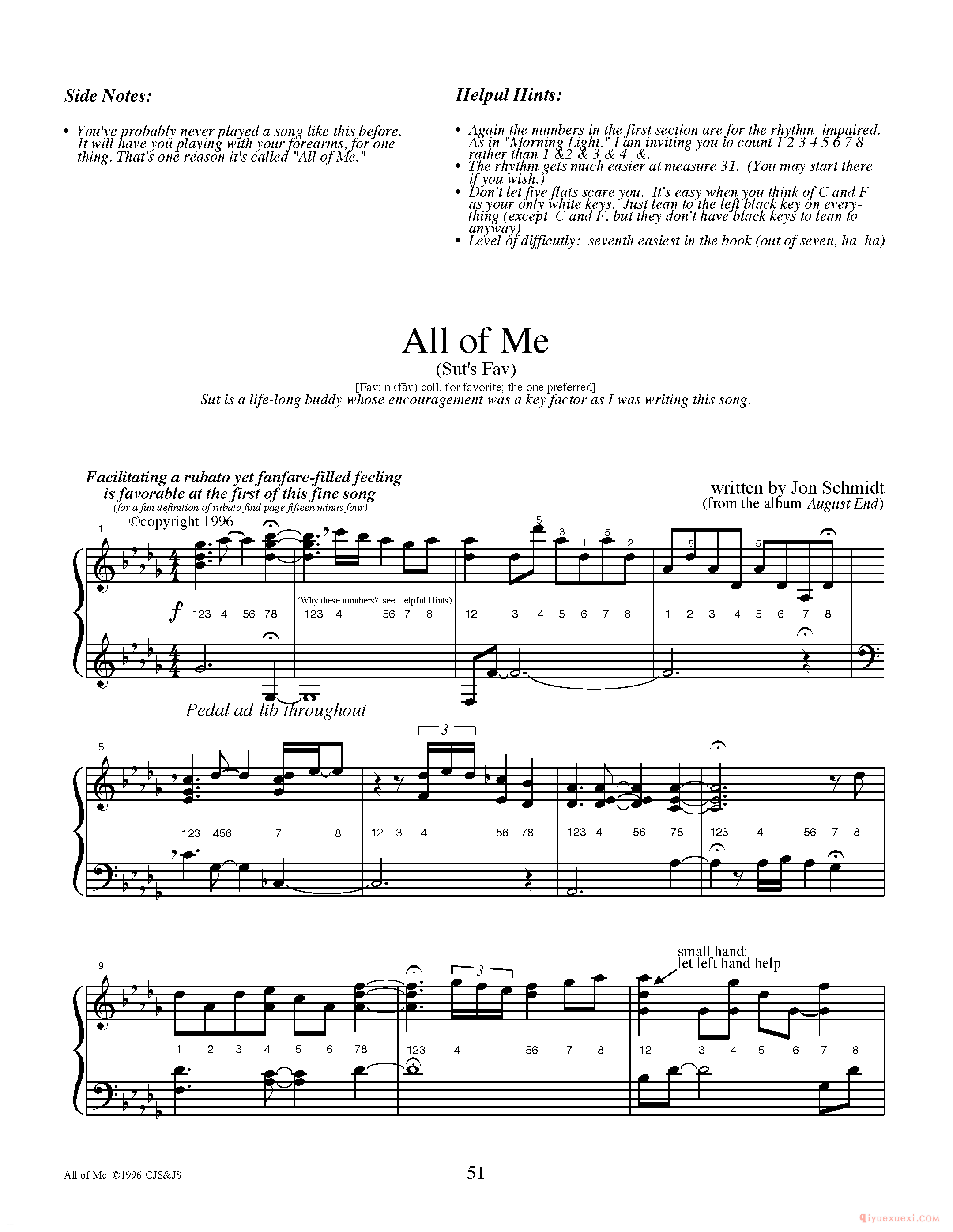 钢琴独奏曲谱《All of Me》Jon Schmidt高清电子版乐谱歌词图片是器乐学习网于2021年10月11日 09:57:26更新分享的钢琴曲谱;资源收录于钢琴曲谱栏目中;器乐学习网免费分享钢琴独奏曲谱《All of Me》Jon Schmidt简谱与五线谱歌谱图片,欢迎在线免费下载;器乐学习网无需注册会员,直接免费下载各类乐器学习资源及乐谱。