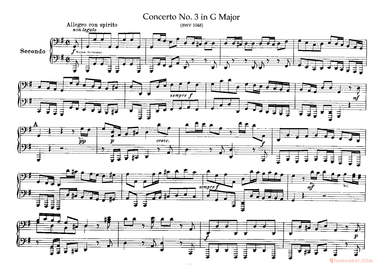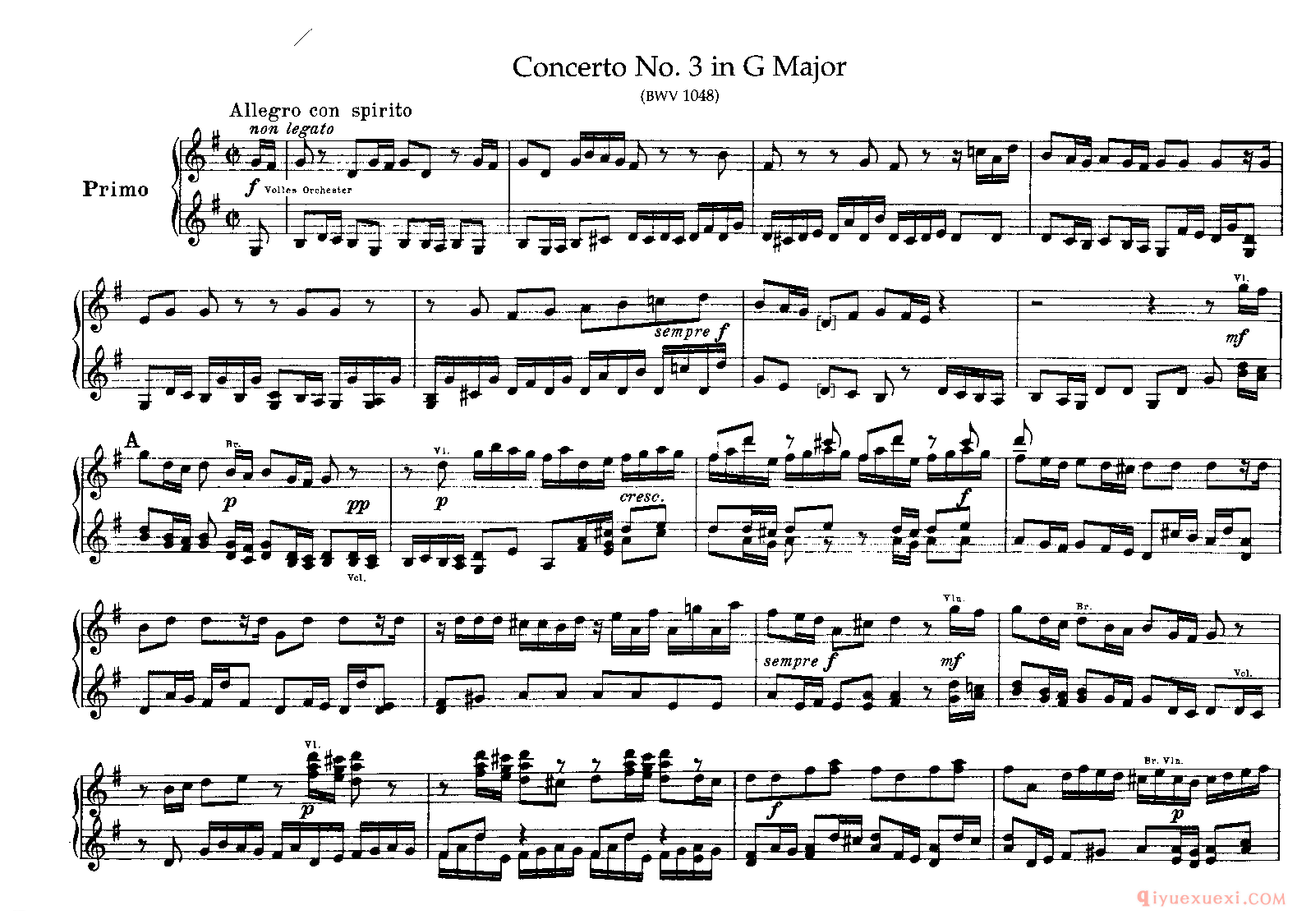 巴赫勃兰登堡协奏曲第三首G大调《Concerto NO.3 in G Major BWV1048》钢琴四手联弹高清电子版乐谱歌词图片是器乐学习网于2021年10月12日 10:31:18更新分享的钢琴曲谱;资源收录于钢琴曲谱栏目中;器乐学习网免费分享巴赫勃兰登堡协奏曲第三首G大调《Concerto NO.3 in G Major BWV1048》钢琴四手联弹简谱与五线谱歌谱图片,欢迎在线免费下载;器乐学习网无需注册会员,直接免费下载各类乐器学习资源及乐谱。