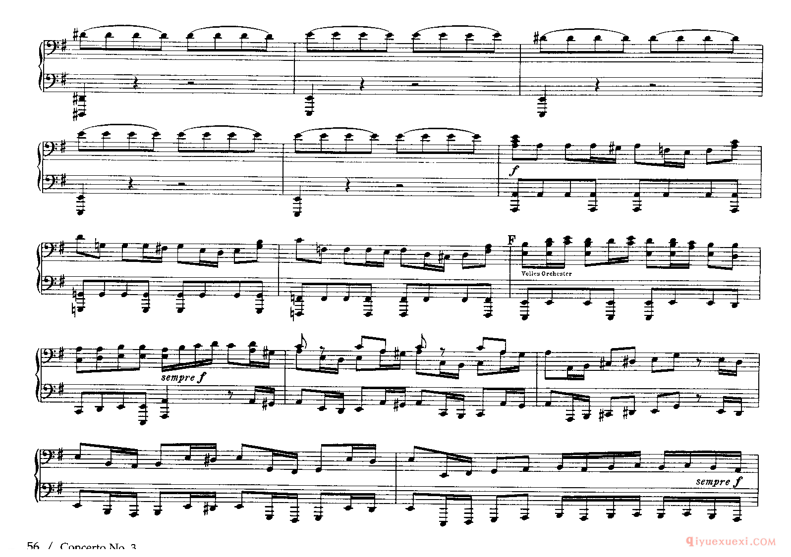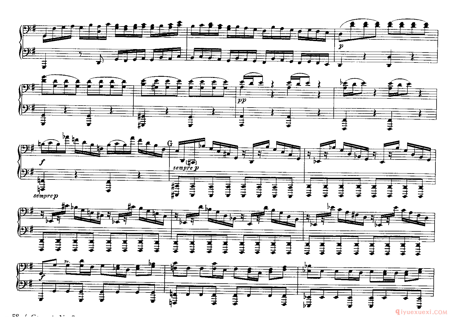 3、快板,由各自反复的两个部分结成,选用了吉格舞曲节奏,不断的在呈示中反复与转调,形成富有活力的和声及曲折环绕的旋律交织。