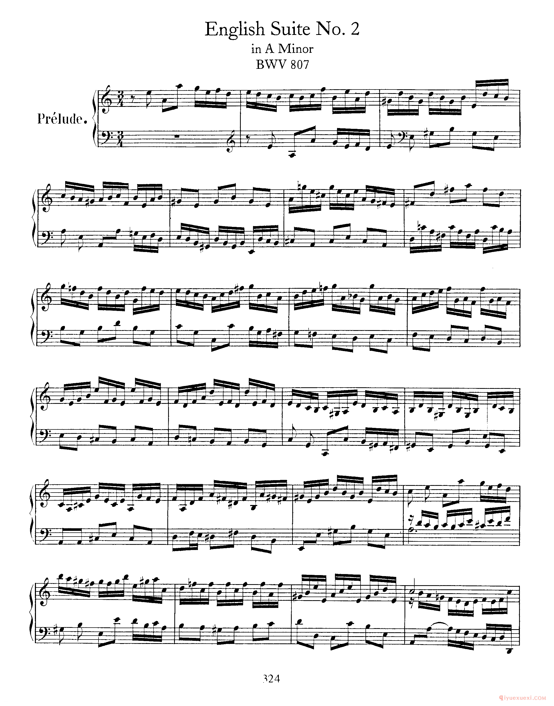 巴赫英国组曲第二首A小调《English Suite No.2 in A Minor BWV807》高清电子版乐谱歌词图片是器乐学习网于2021年10月12日 11:11:37更新分享的钢琴曲谱;资源收录于钢琴曲谱栏目中;器乐学习网免费分享巴赫英国组曲第二首A小调《English Suite No.2 in A Minor BWV807》简谱与五线谱歌谱图片,欢迎在线免费下载;器乐学习网无需注册会员,直接免费下载各类乐器学习资源及乐谱。
