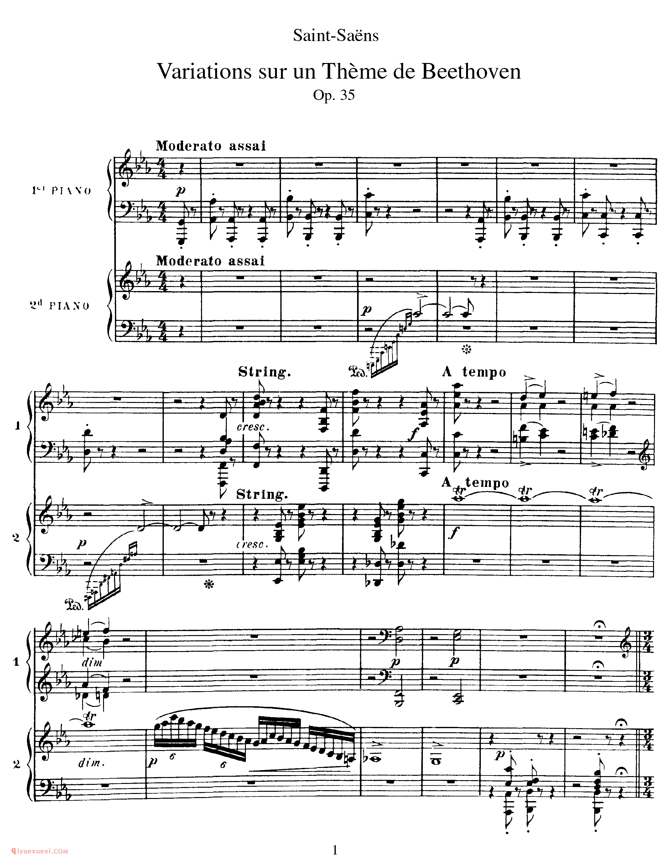 四手联弹 贝多芬主题变奏曲 Variations on a Theme by Beethoven, Op 35 (2 Piano)_圣桑钢琴谱高清电子版乐谱歌词图片是器乐学习网于2021年11月15日 09:16:01更新分享的钢琴曲谱;资源收录于钢琴曲谱栏目中;器乐学习网免费分享四手联弹 贝多芬主题变奏曲 Variations on a Theme by Beethoven, Op 35 (2 Piano)_圣桑钢琴谱简谱与五线谱歌谱图片,欢迎在线免费下载;器乐学习网无需注册会员,直接免费下载各类乐器学习资源及乐谱。