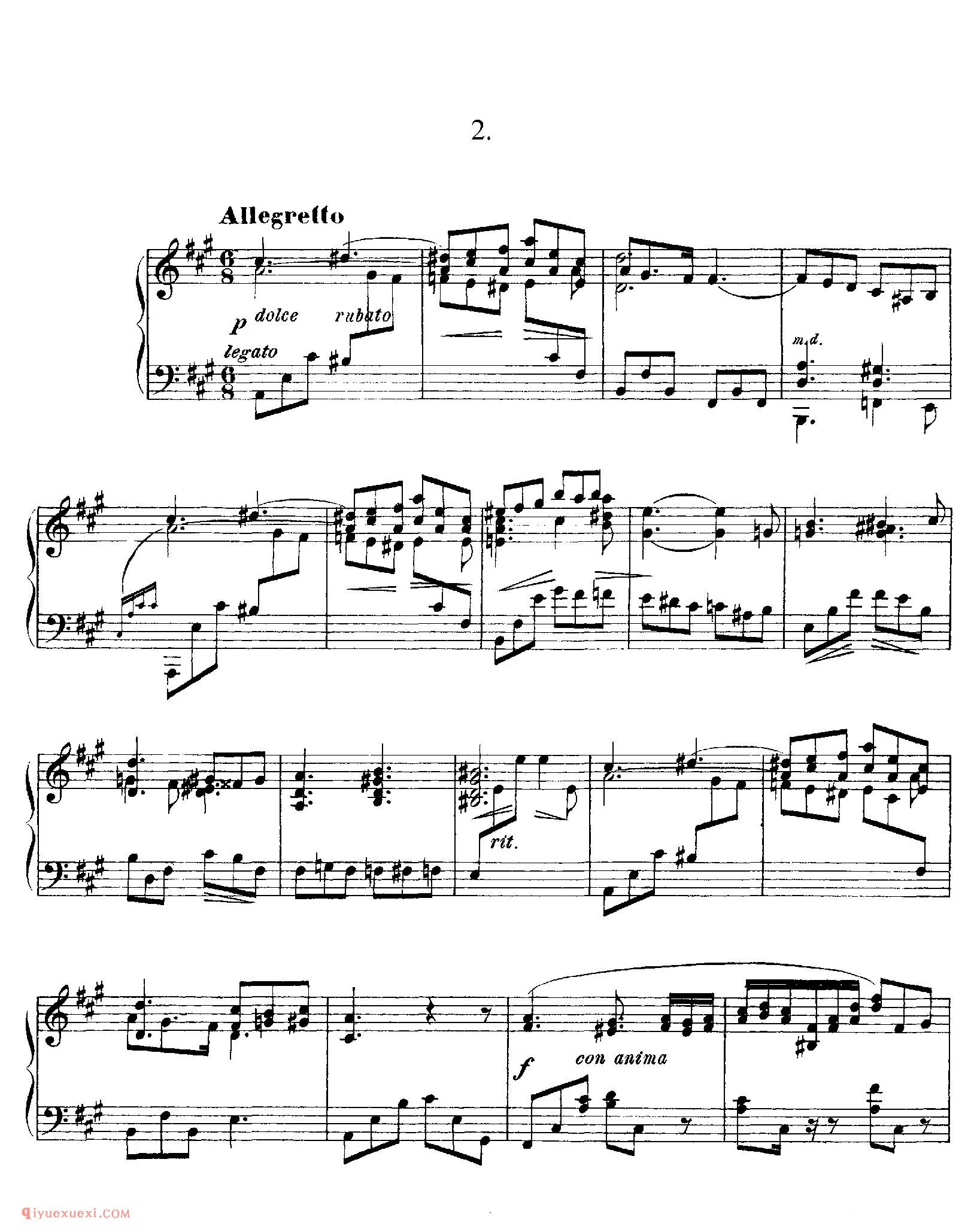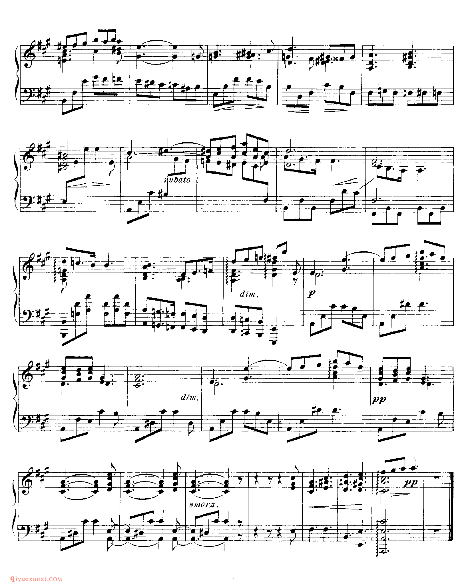 2、A大调夜曲 Nocturne in A Major Op.5-2 ,A大调,6/8拍,三部曲式。主题甜美,肖邦风格。