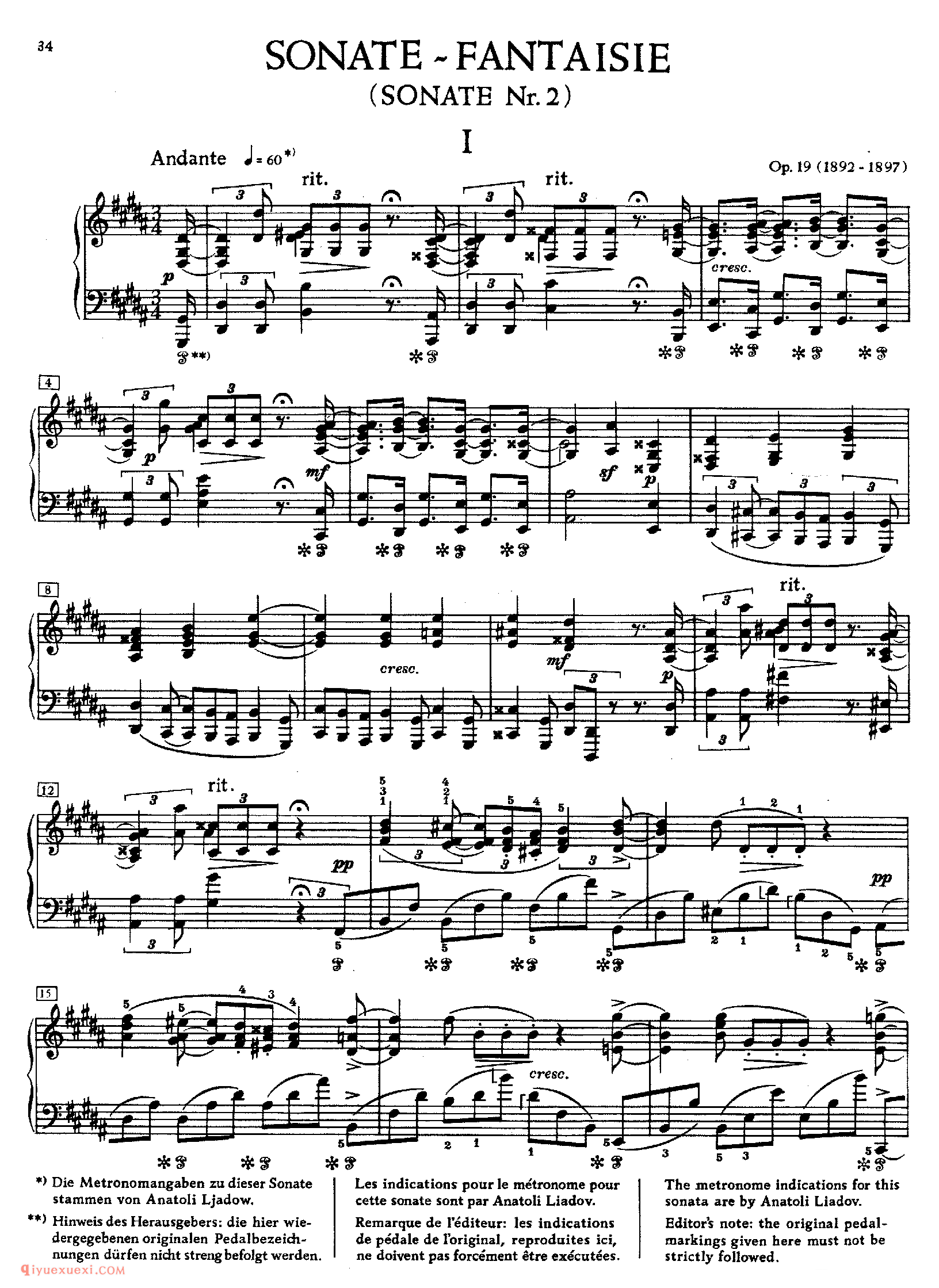 斯克里亚宾《升g小调第二钢琴奏鸣曲“幻想奏鸣曲”》作品19_斯克里亚宾钢琴谱