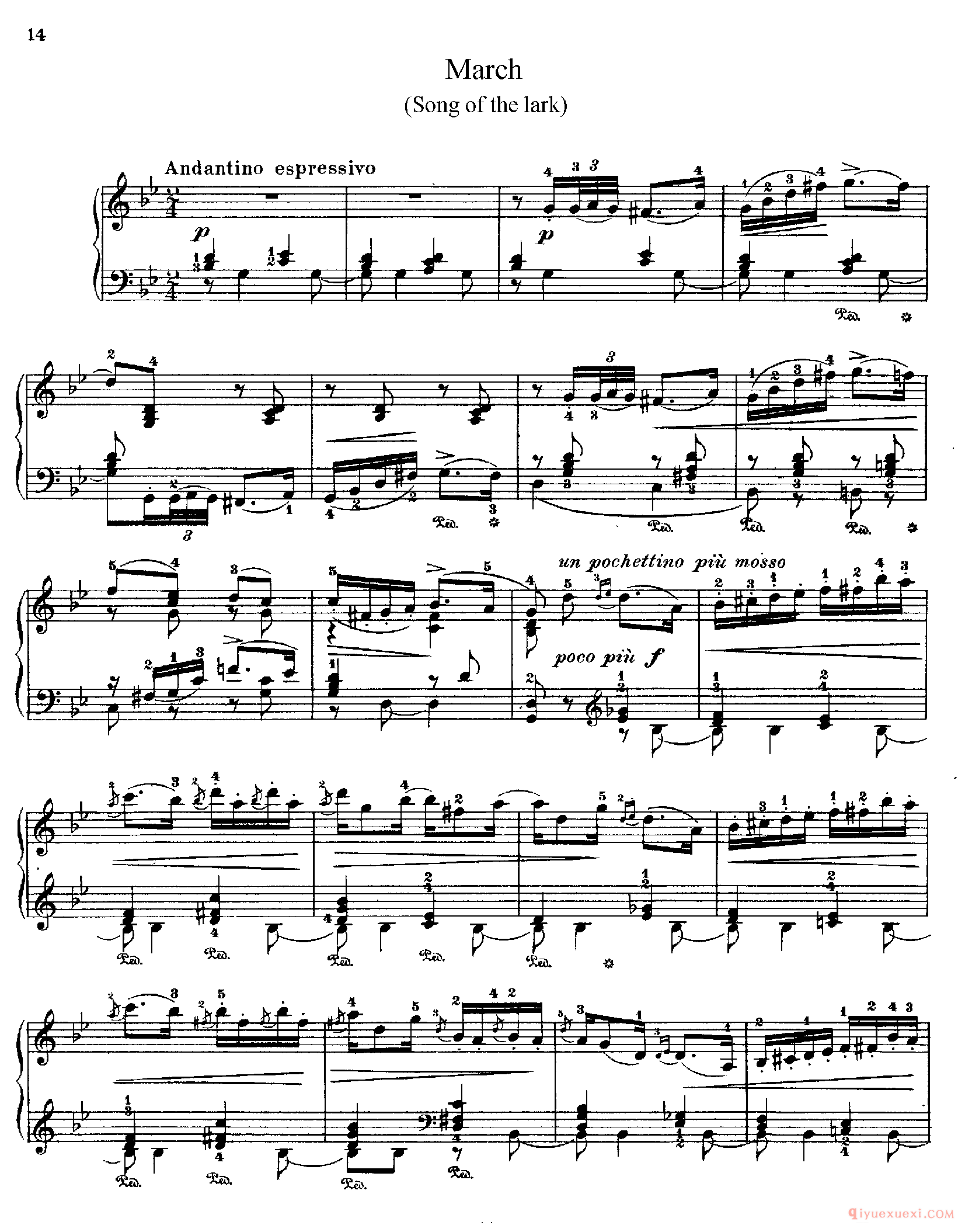 旋律轻捷灵巧,展现云雀欢唱的春日情景。