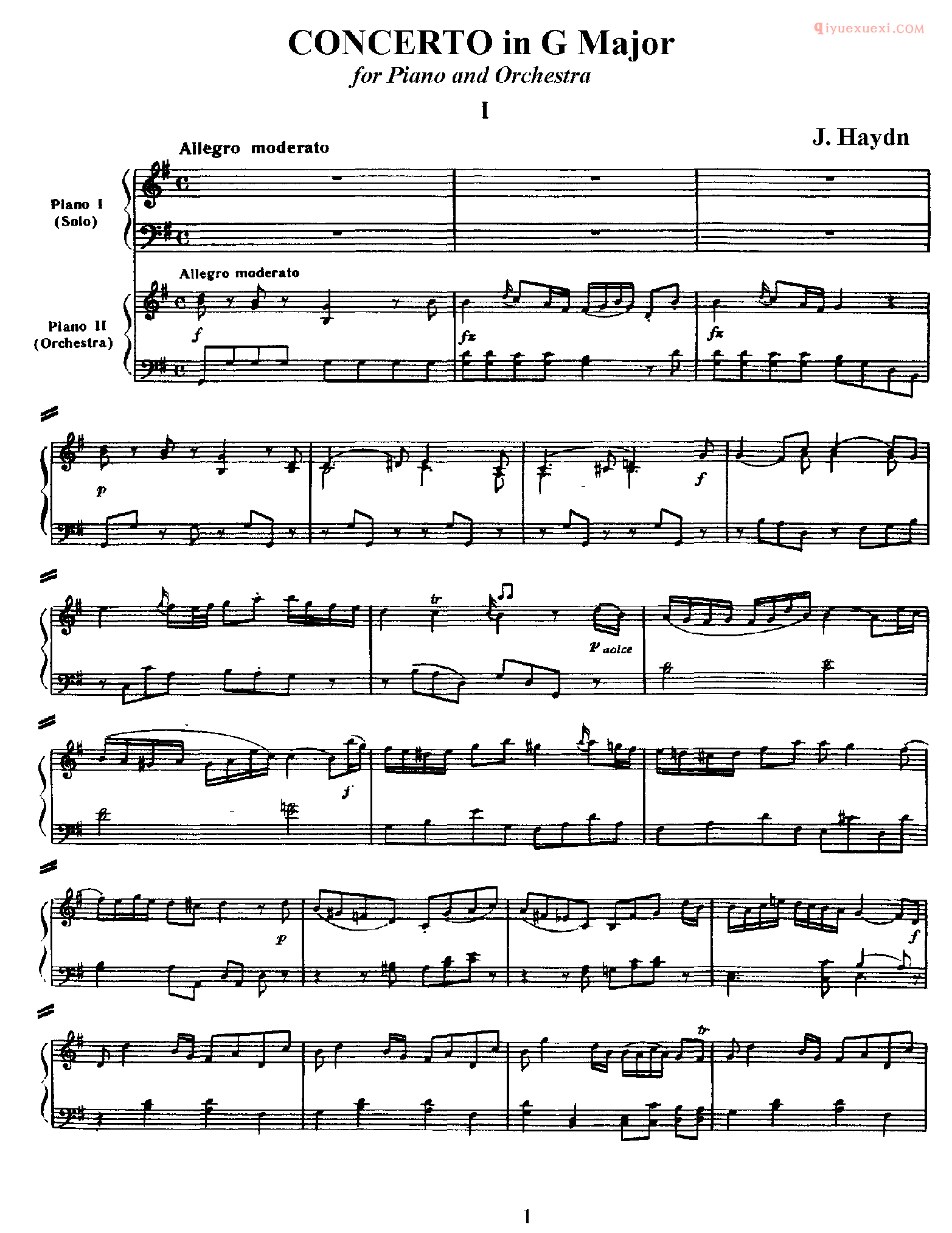 钢琴与管弦乐队 G 大调协奏曲_CONCERTO in G Major for Piano and Orchestra_海顿钢琴谱