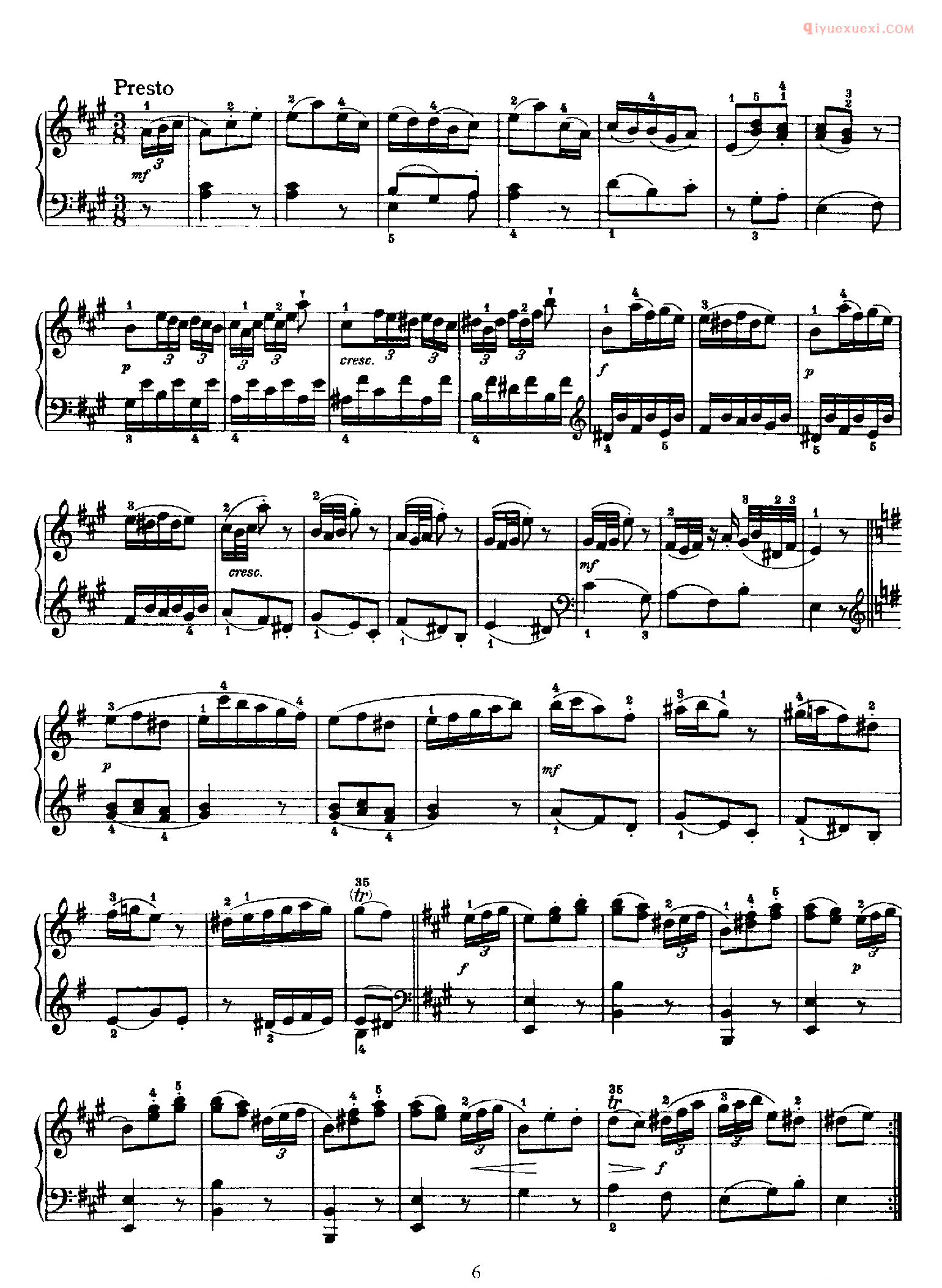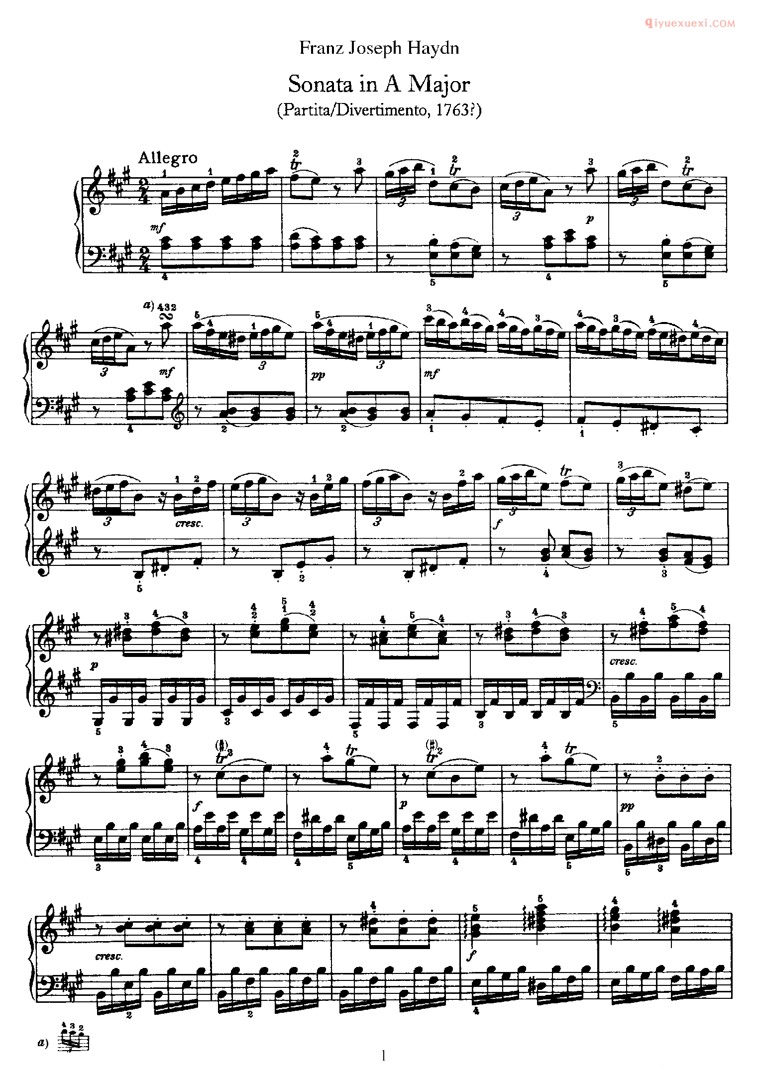 海顿A大调《第5钢琴奏鸣曲》Franz Joseph Haydn Sonata in A Major_海顿钢琴谱