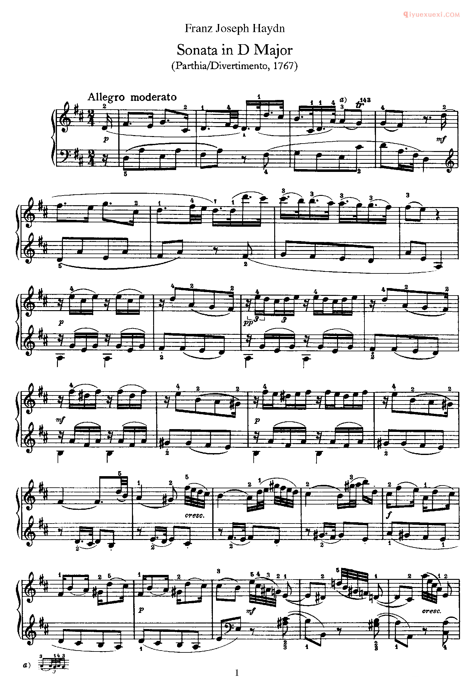 海顿D大调《第14钢琴奏鸣曲》Franz Joseph Haydn Sonata in D Major_海顿钢琴谱