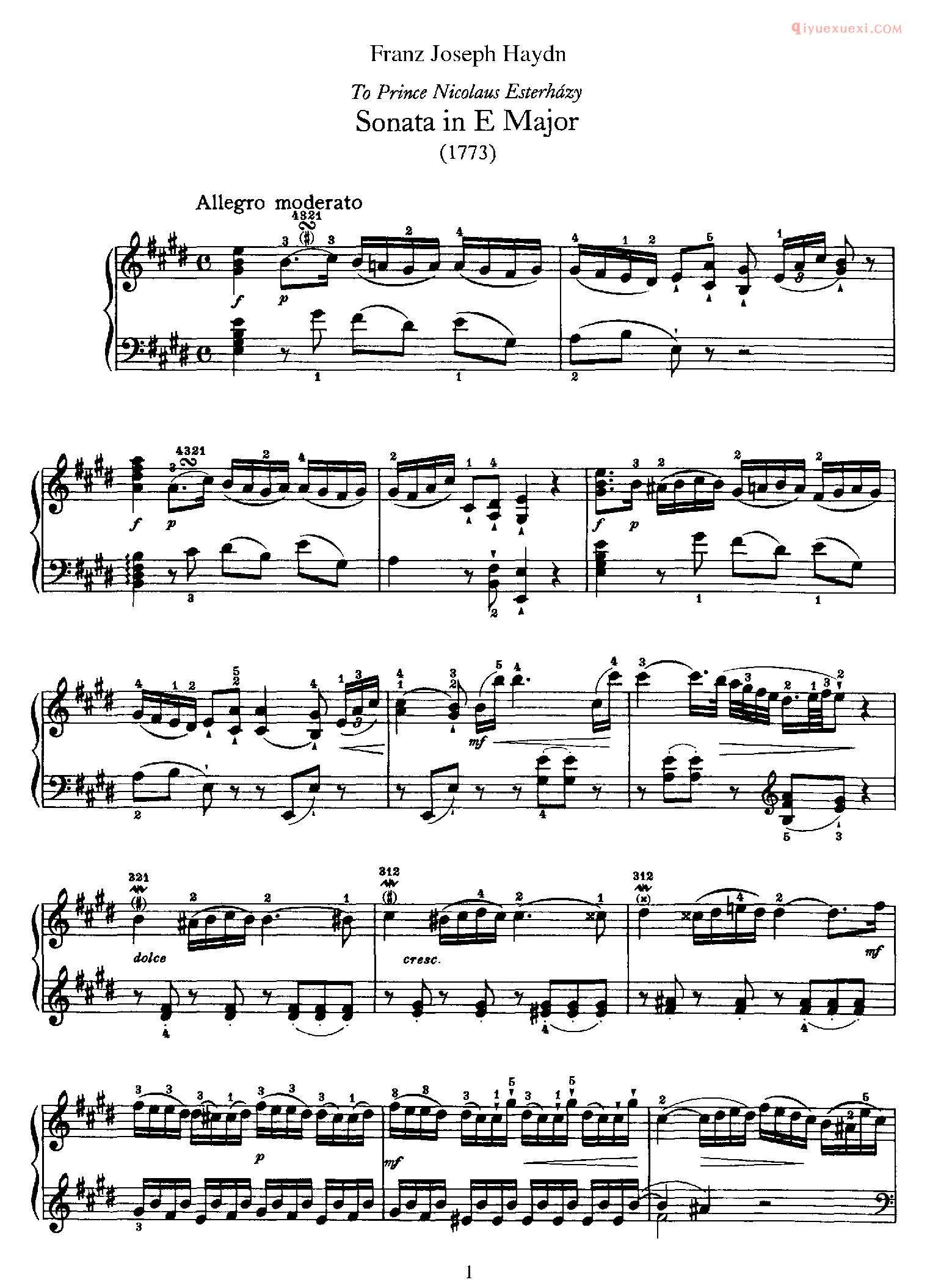 海顿E大调《第22钢琴奏鸣曲》Franz Joseph Haydn Sonata in E Major_海顿钢琴谱