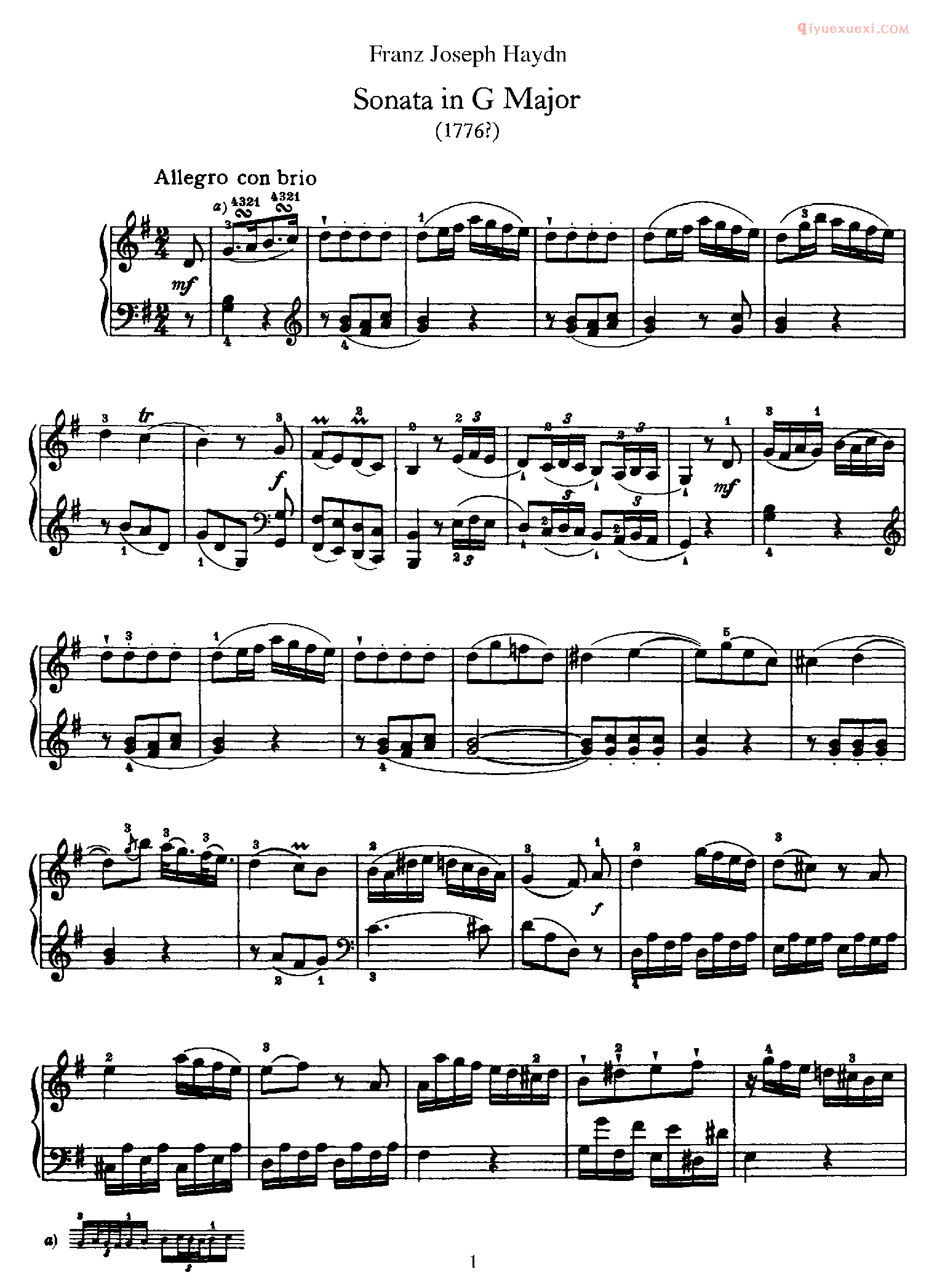 海顿G大调《第27钢琴奏鸣曲》Franz Joseph Haydn Sonata in G Major_海顿钢琴谱