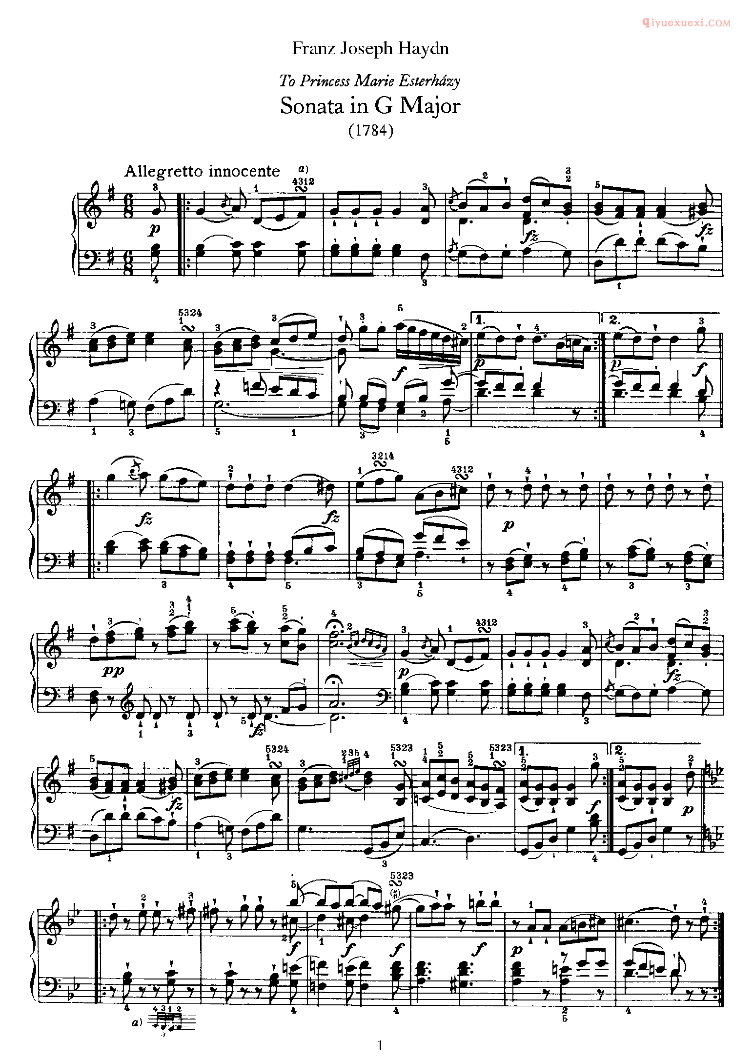 海顿G大调《第40钢琴奏鸣曲》Franz Joseph Haydn Sonata in G Major_海顿钢琴谱