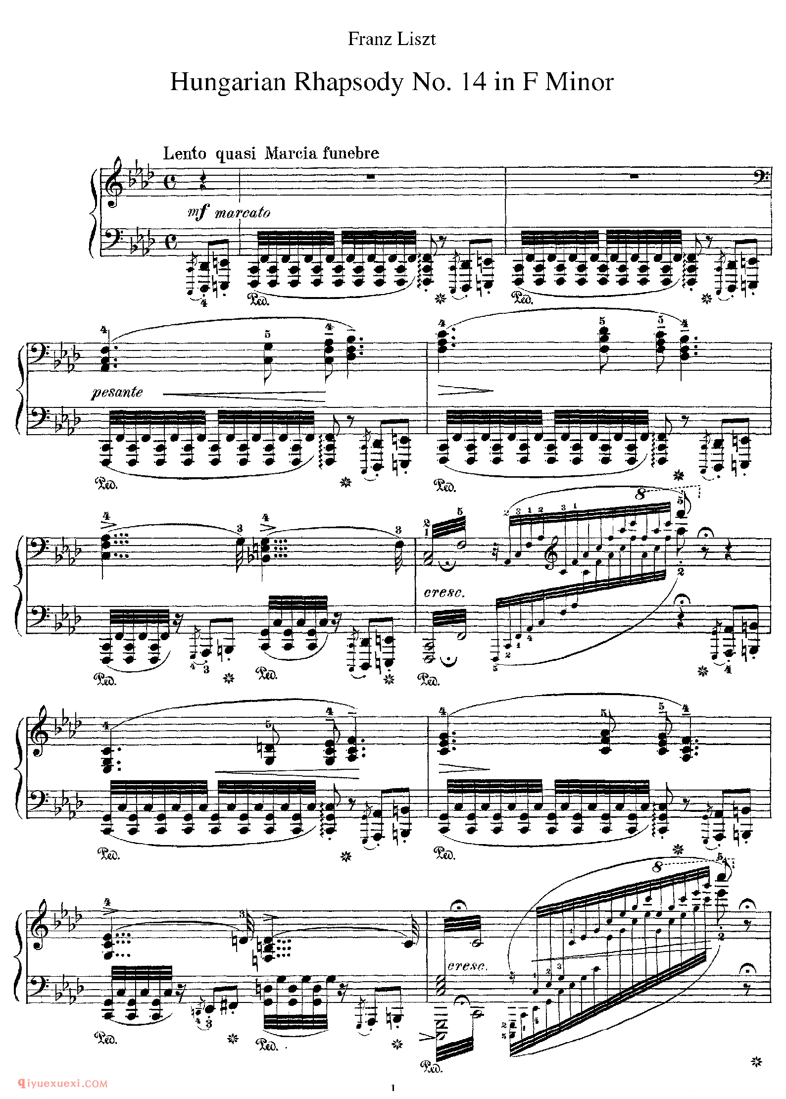 李斯特匈牙利狂想曲第14号_Hungarian Rhapsody No 14 in f_李斯特钢琴乐谱