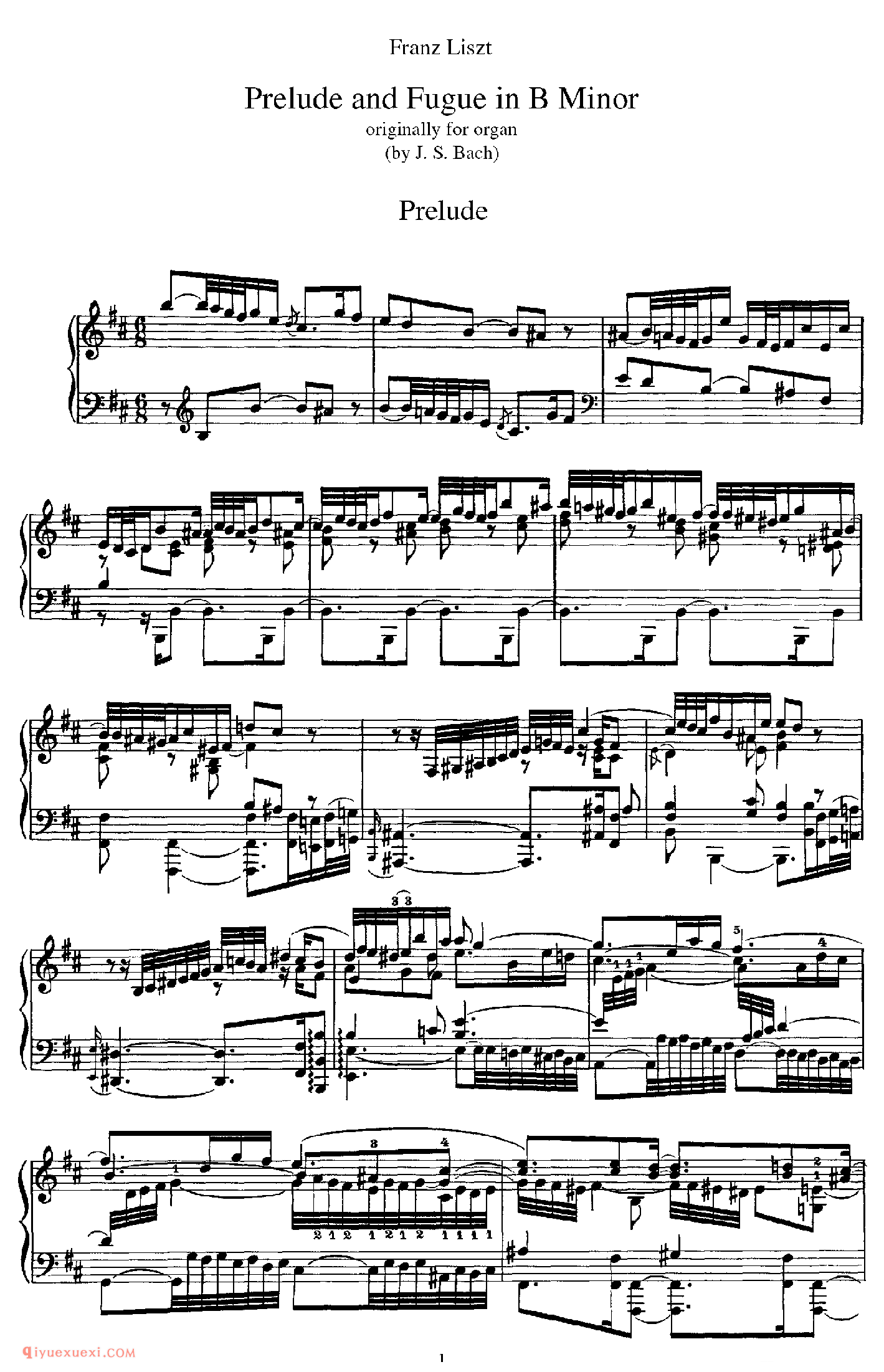 Prelude and Fugue in b, BWV 544 (Bach)_改编巴赫_李斯特钢琴乐谱