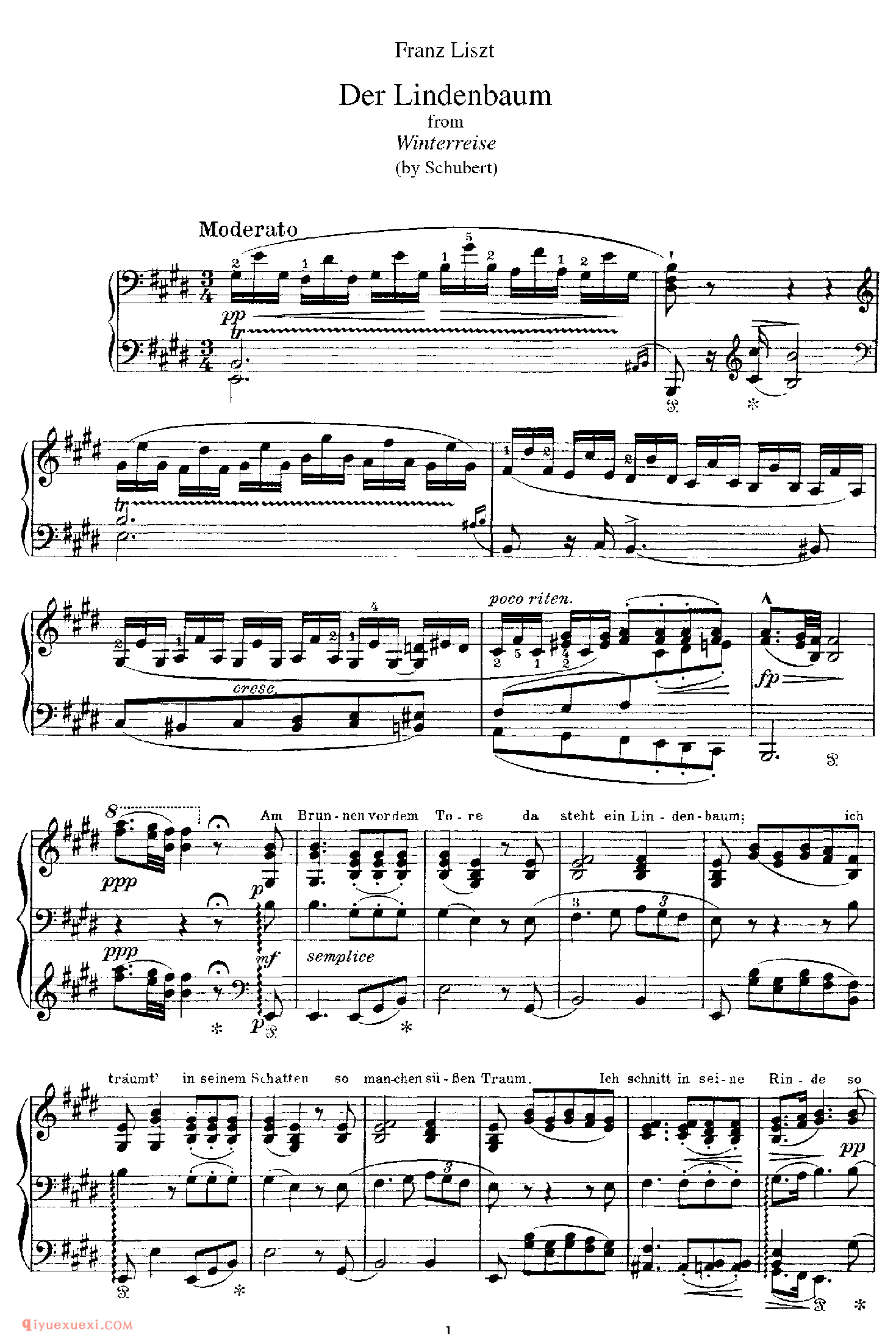 Der Lindenbaum (Schubert)_改编舒伯特_李斯特钢琴乐谱高清电子版乐谱歌词图片是器乐学习网于2021年11月27日 17:38:39更新分享的钢琴曲谱;资源收录于钢琴曲谱栏目中;器乐学习网免费分享Der Lindenbaum (Schubert)_改编舒伯特_李斯特钢琴乐谱简谱与五线谱歌谱图片,欢迎在线免费下载;器乐学习网无需注册会员,直接免费下载各类乐器学习资源及乐谱。