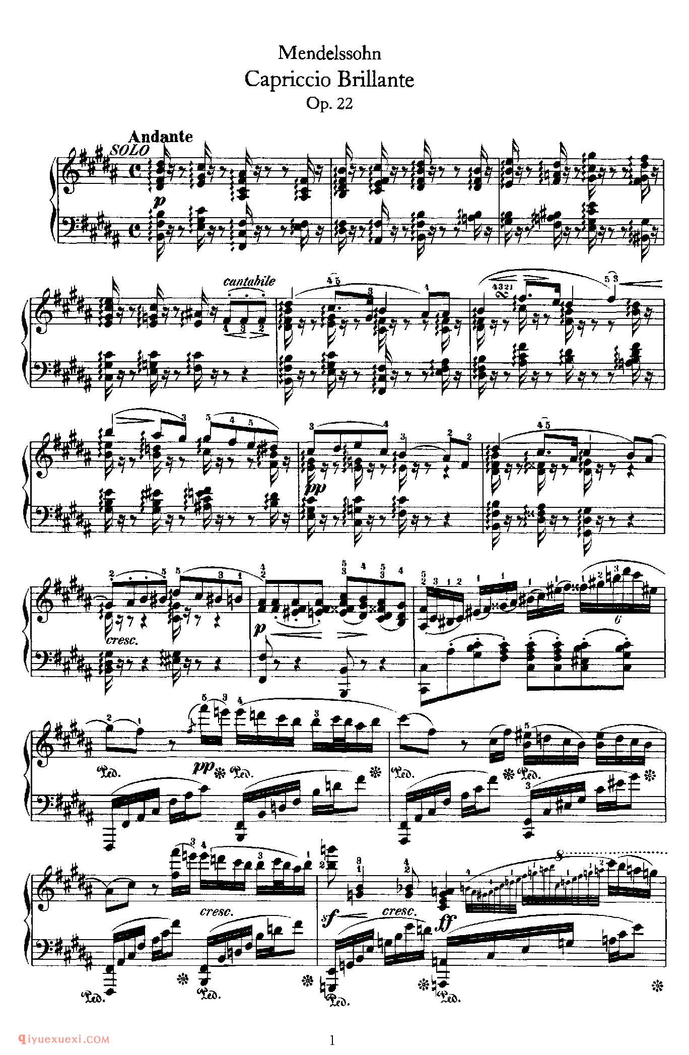 B大调华丽随想曲 Op 22_门德尔松钢琴谱