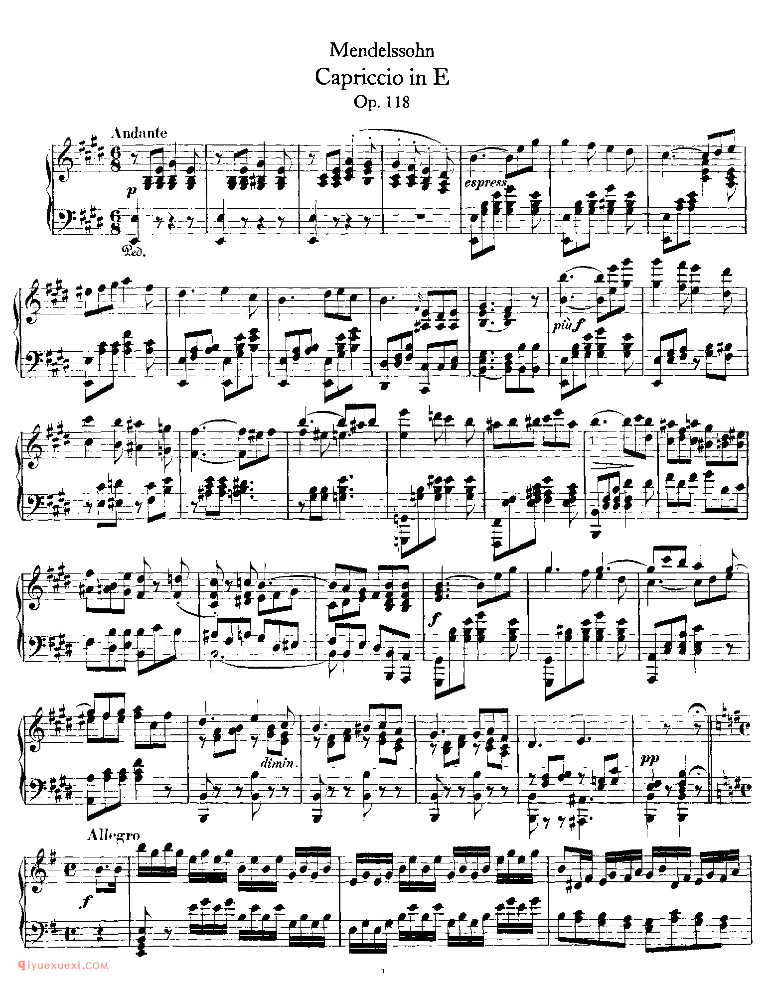 Capriccio in E, Op 118_门德尔松钢琴谱