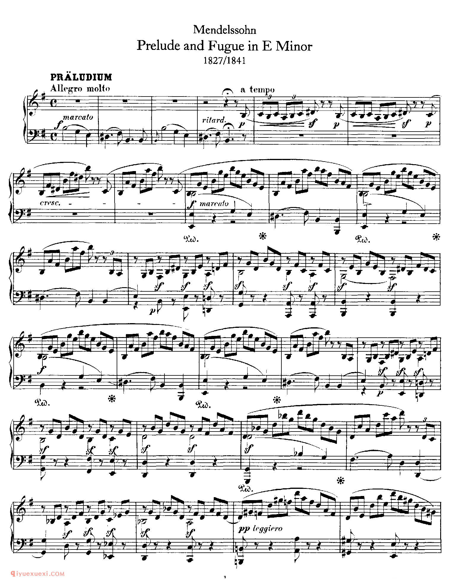 Prelude and Fugue in e, (1841)_门德尔松钢琴谱