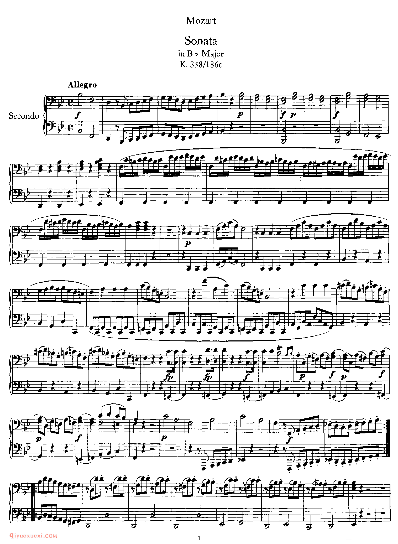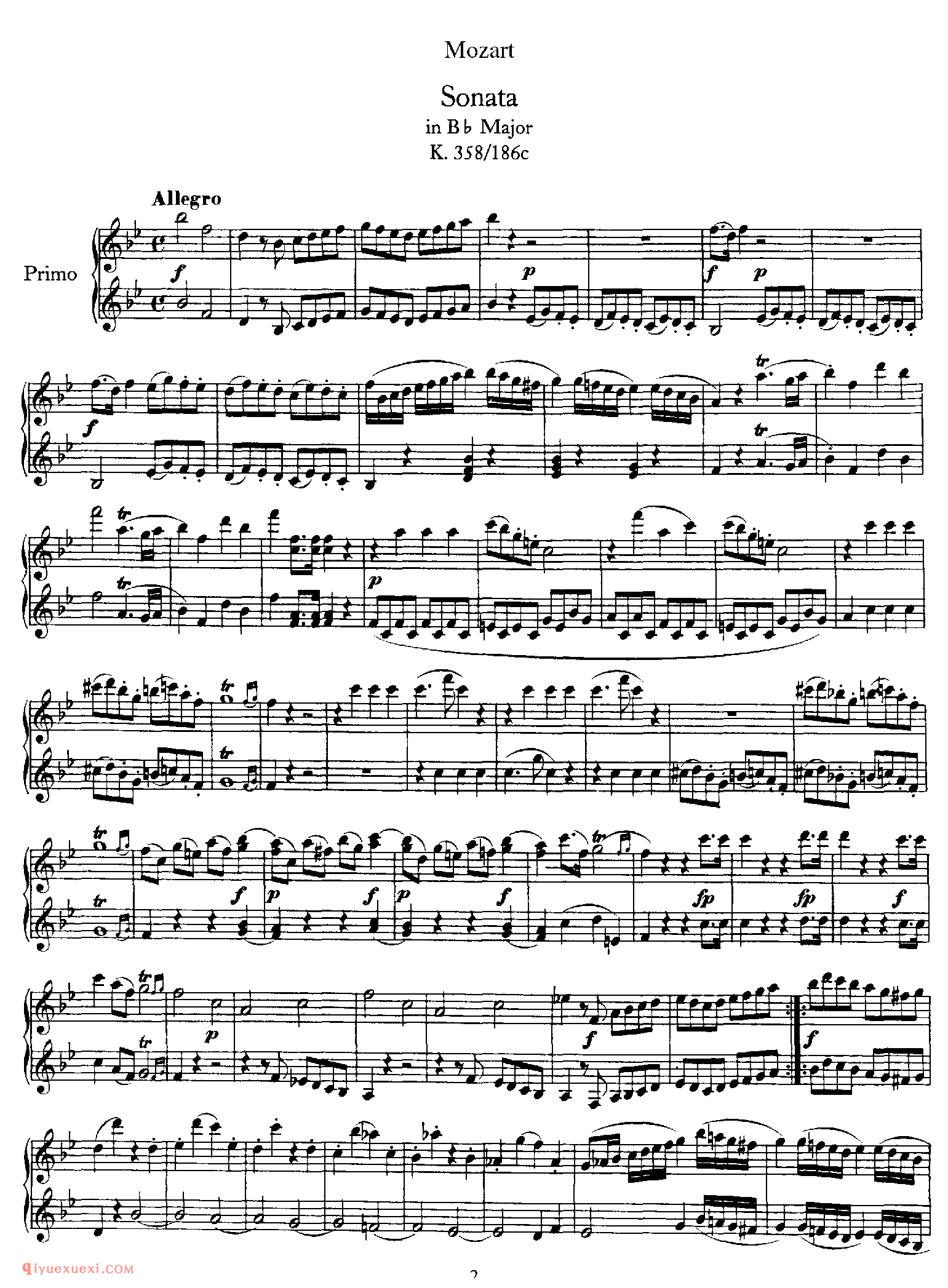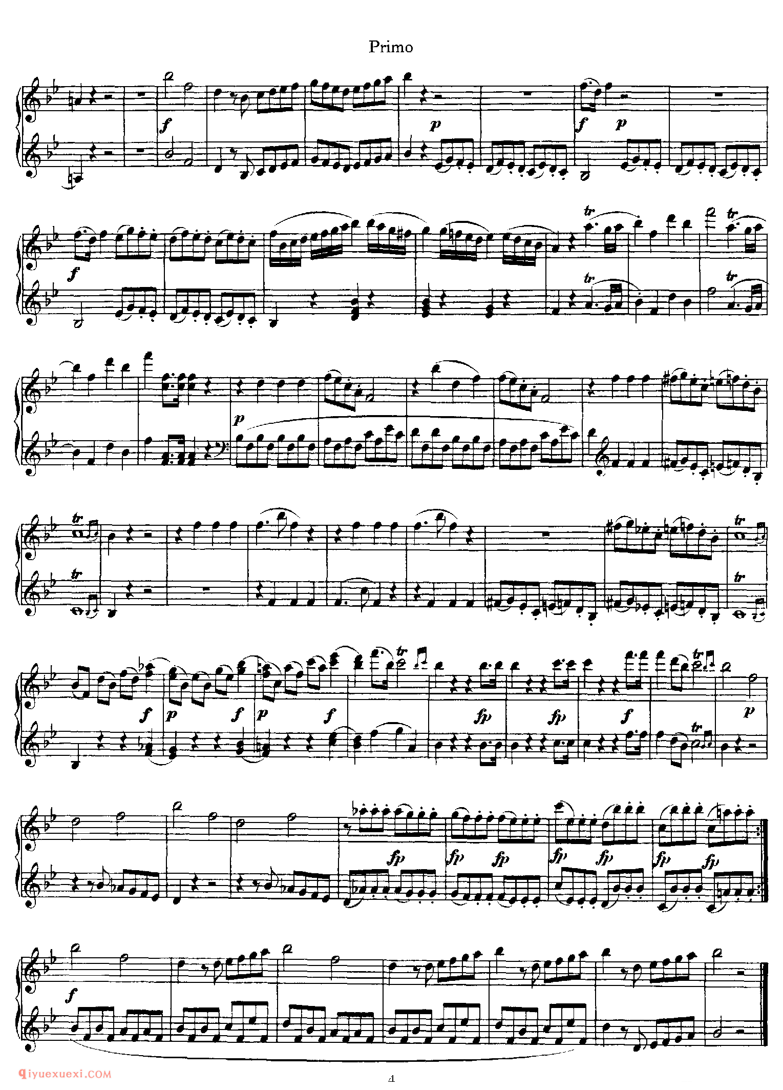 莫扎特 B大调奏鸣曲Sonata in Bb, K 358 (4 Hands)_四手联弹_莫扎特钢琴谱