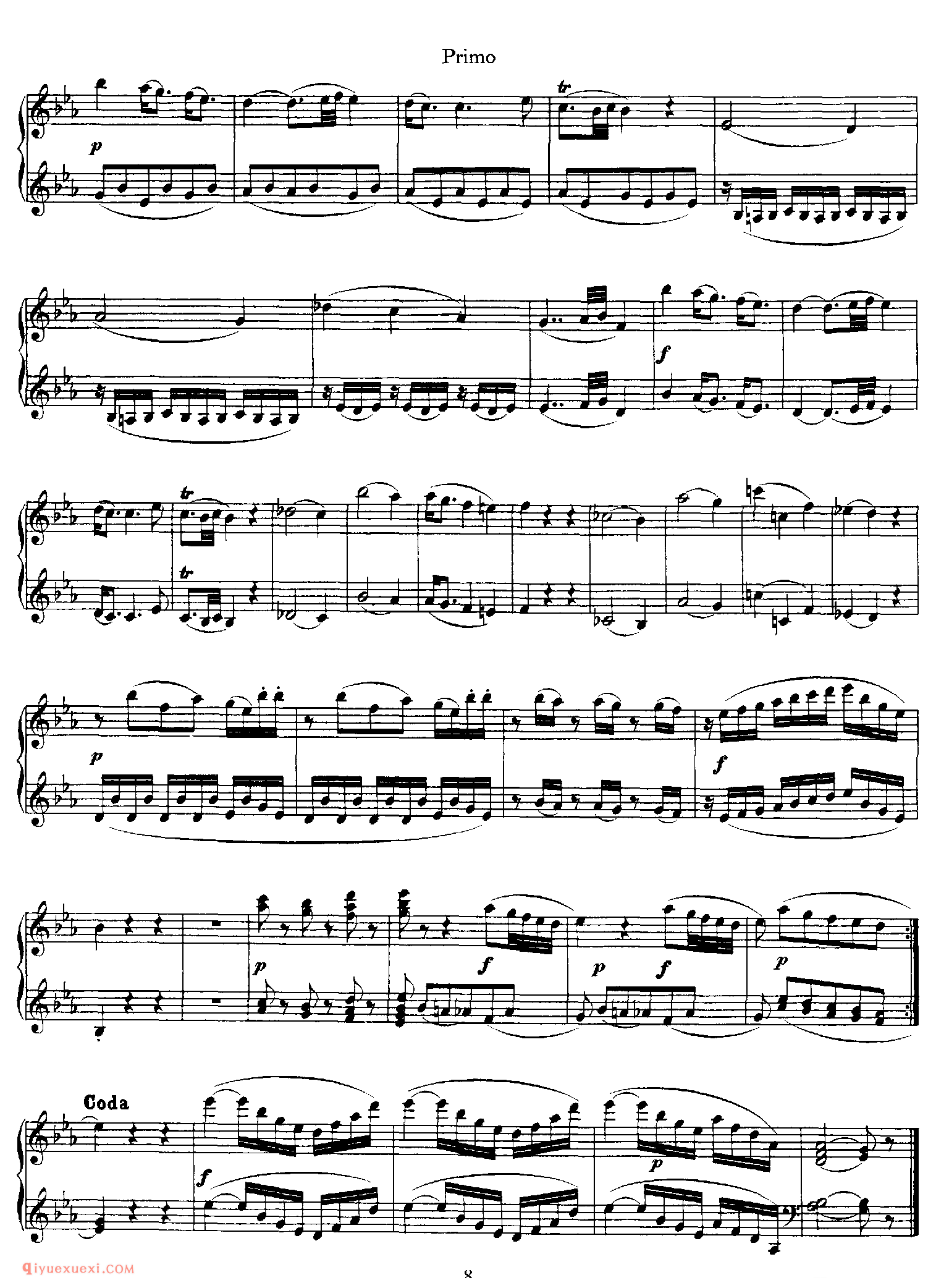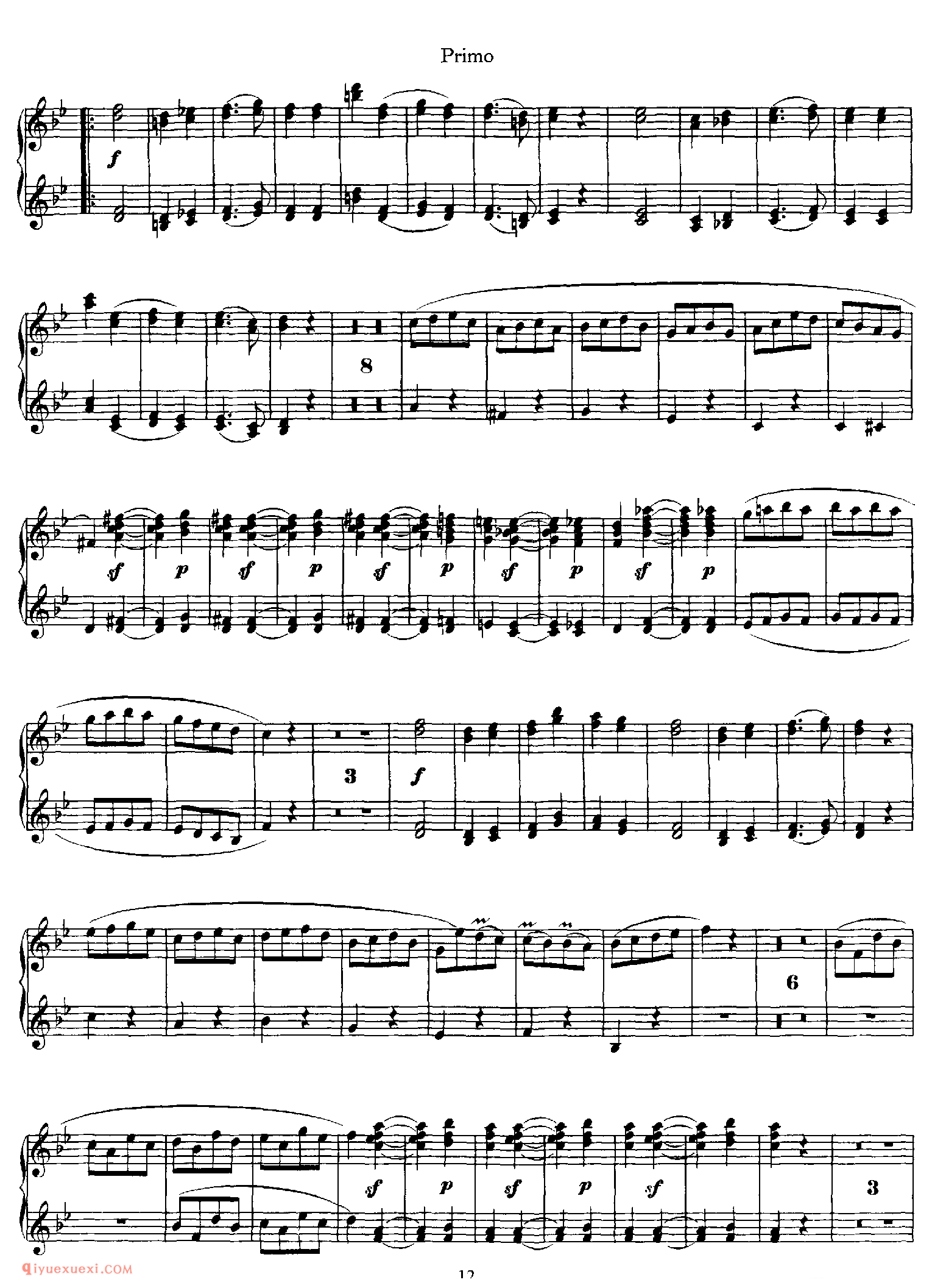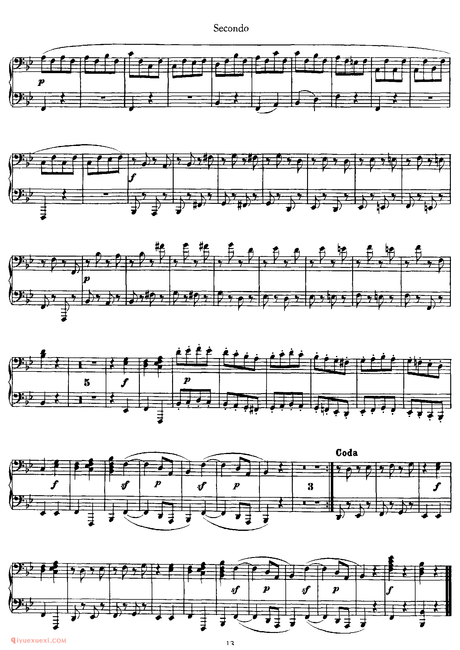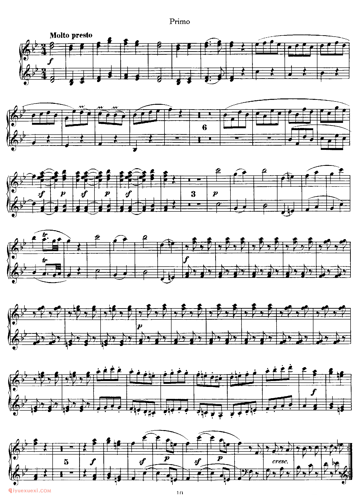 莫扎特 B大调奏鸣曲Sonata in Bb, K 358 (4 Hands)_四手联弹_莫扎特钢琴谱