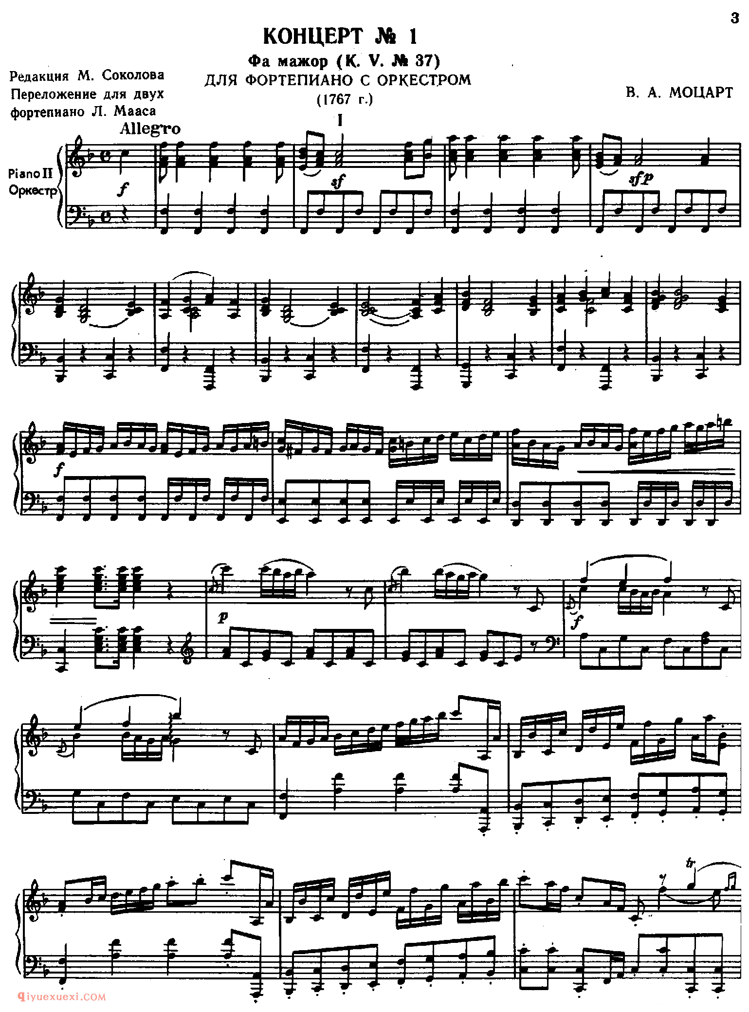 莫扎特:第一钢琴协奏曲 MOZART: Piano Concerto No.1_钢琴与乐队作品_莫扎特钢琴谱