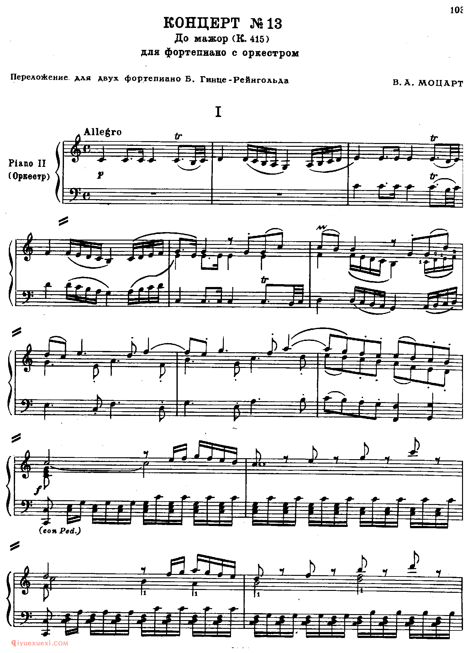 莫扎特C大调第13钢琴协奏曲 K.415/K.387b_钢琴与乐队作品_莫扎特钢琴谱