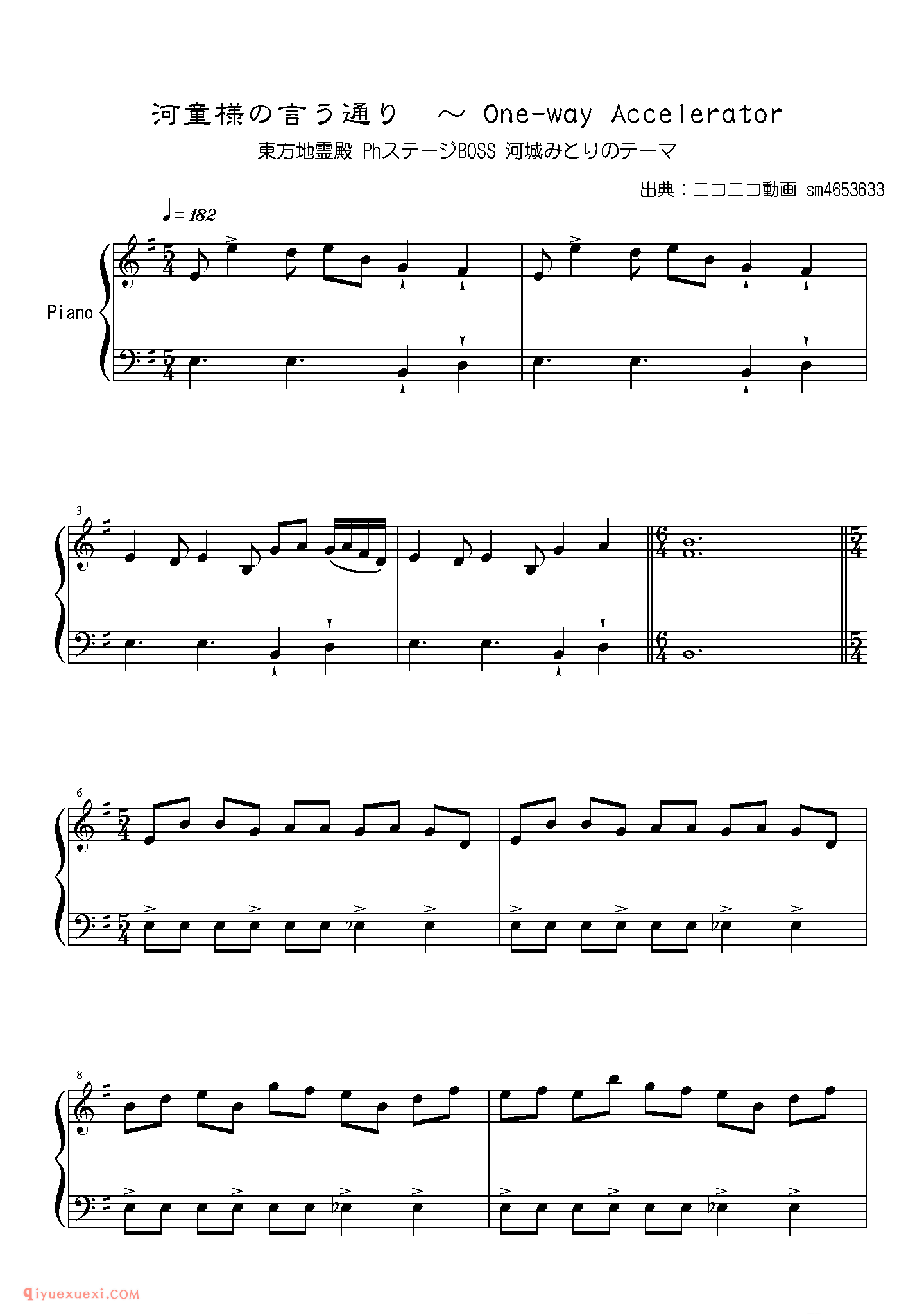 [幻想隐ね里][lunatic][8]河童様の言う通り ~ One-way Accelerator_东方(project)钢琴谱