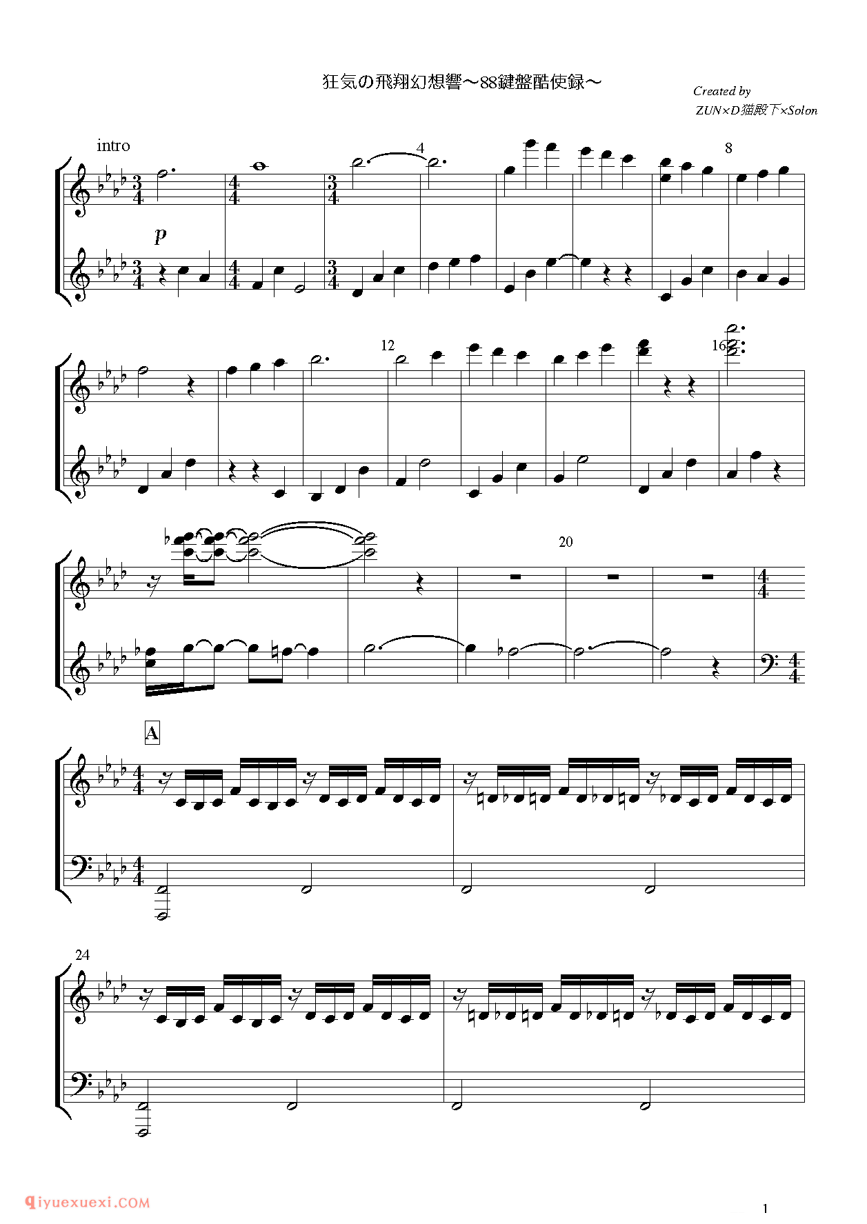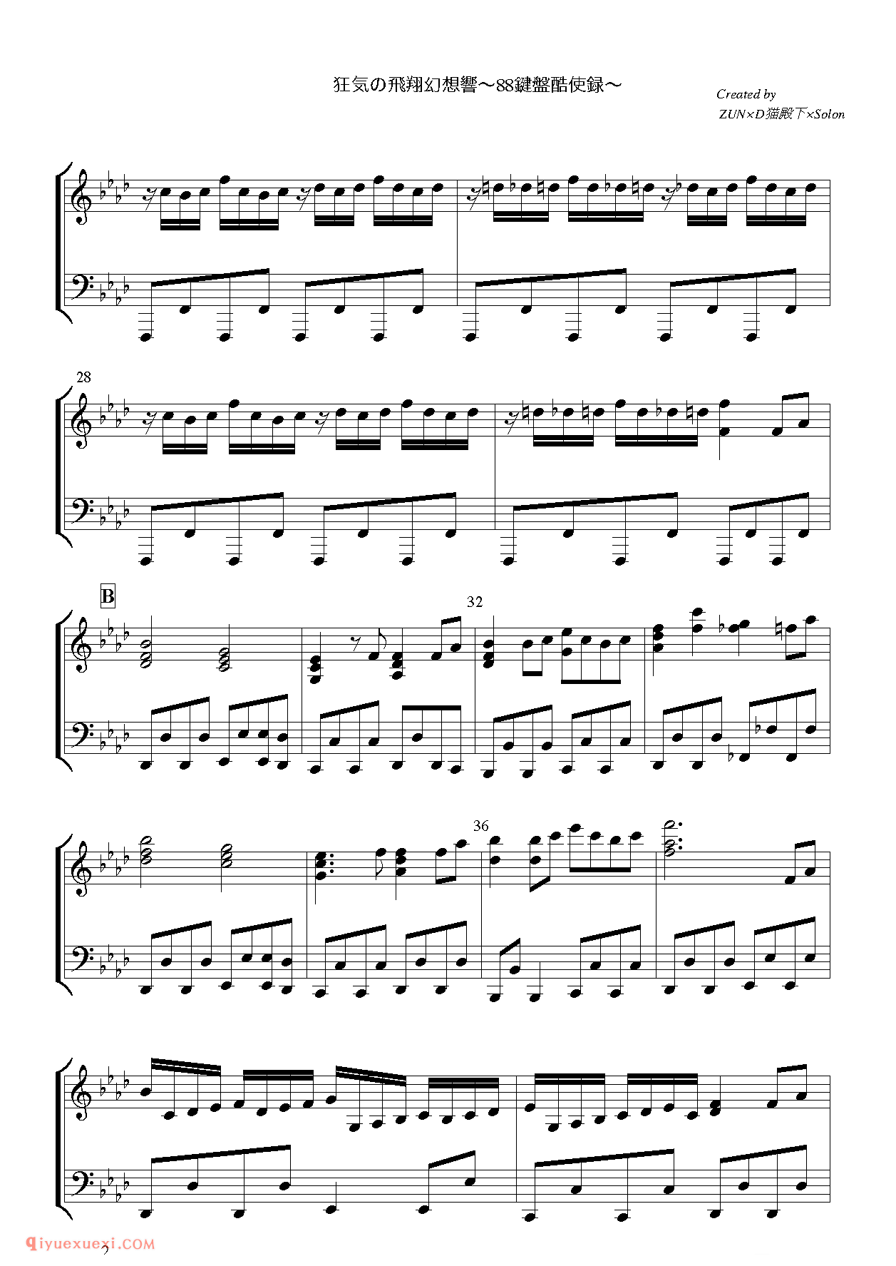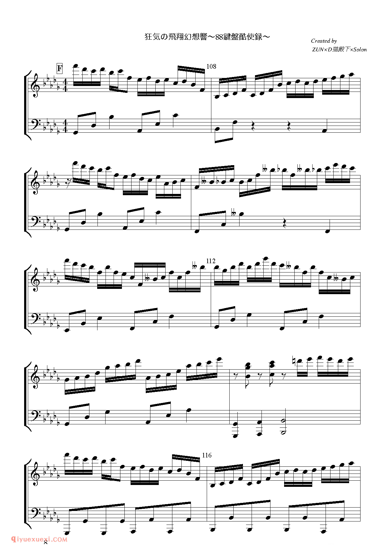 狂気の飛翔幻想響(β版)_东方(project)钢琴谱高清电子版乐谱歌词图片是器乐学习网于2021年12月04日 23:43:20更新分享的钢琴曲谱;资源收录于钢琴曲谱栏目中;器乐学习网免费分享狂気の飛翔幻想響(β版)_东方(project)钢琴谱简谱与五线谱歌谱图片,欢迎在线免费下载;器乐学习网无需注册会员,直接免费下载各类乐器学习资源及乐谱。