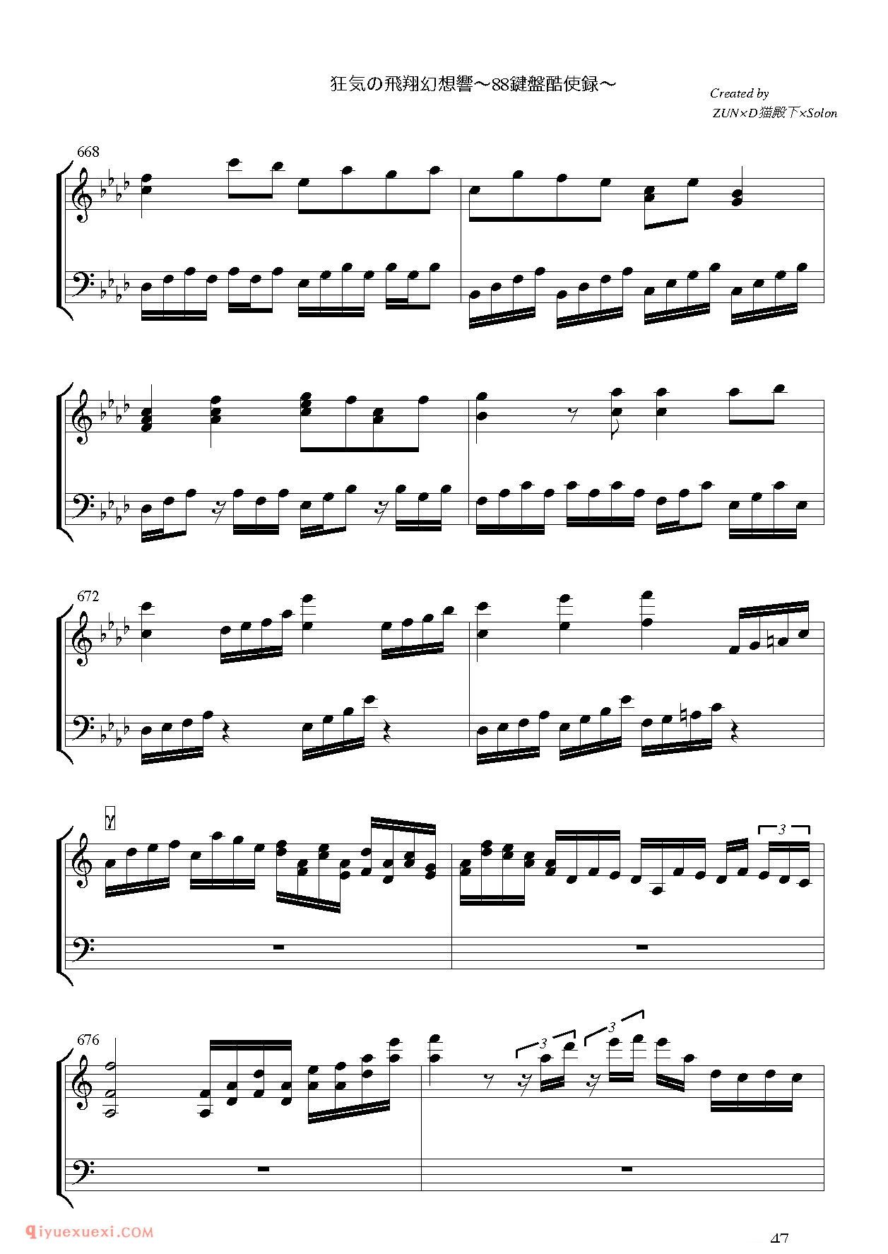 狂気の飛翔幻想響(β版)_东方(project)钢琴谱(5)高清电子版乐谱歌词图片是器乐学习网于2021年12月04日 23:43:20更新分享的钢琴曲谱;资源收录于钢琴曲谱栏目中;器乐学习网免费分享狂気の飛翔幻想響(β版)_东方(project)钢琴谱(5)简谱与五线谱歌谱图片,欢迎在线免费下载;器乐学习网无需注册会员,直接免费下载各类乐器学习资源及乐谱。
