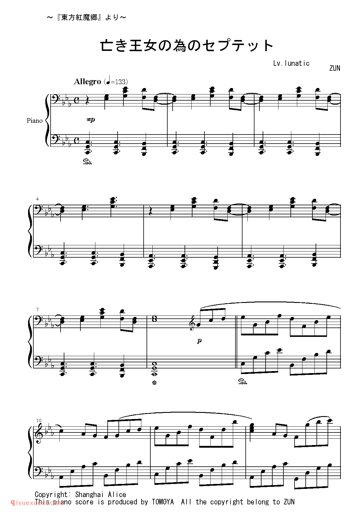 [光と闇の協奏曲][lunatic][10]_亡き王女の為のセプテット_东方(project)钢琴谱