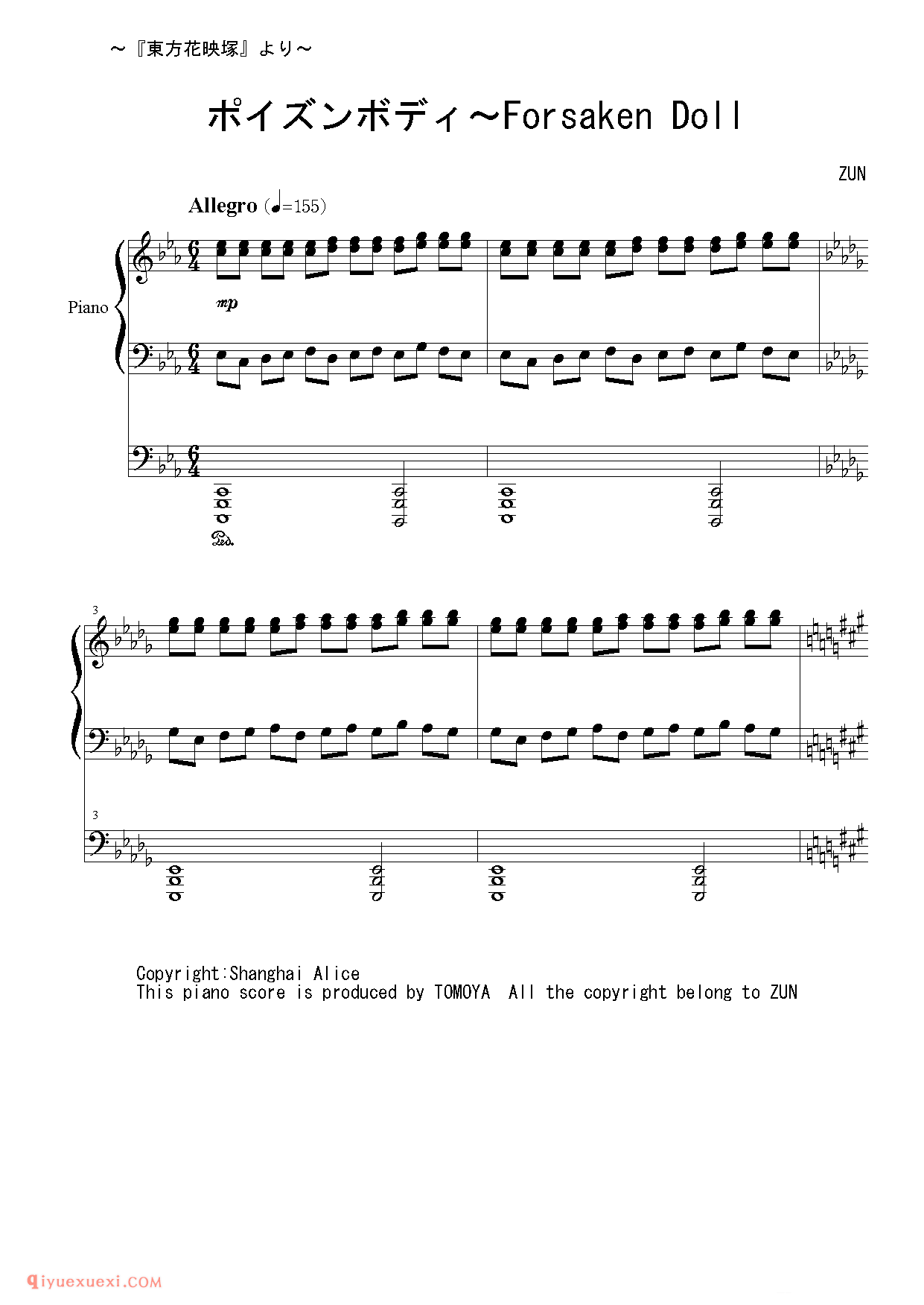 佚名 网络[光と闇の協奏曲][hard][7]_ポイズンボディ~Forsaken Doll_东方(project)钢琴谱高清电子版乐谱歌词图片是器乐学习网于2021年12月06日 20:37:43更新分享的钢琴曲谱;资源收录于钢琴曲谱栏目中;器乐学习网免费分享[光と闇の協奏曲][hard][7]_ポイズンボディ~Forsaken Doll_东方(project)钢琴谱简谱与五线谱歌谱图片,欢迎在线免费下载;器乐学习网无需注册会员,直接免费下载各类乐器学习资源及乐谱。
