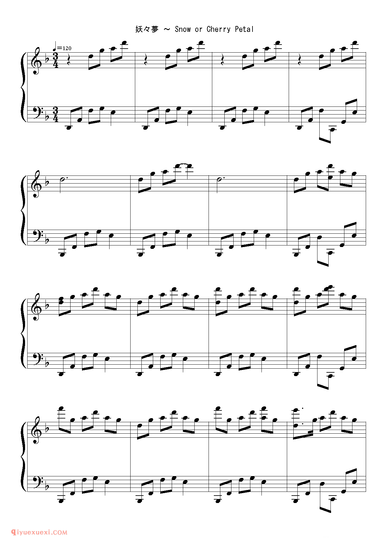 [東方ピアノEasyモード楽譜][normal][4]_妖々夢~Snow or Cherry Petal_东方(project)钢琴谱