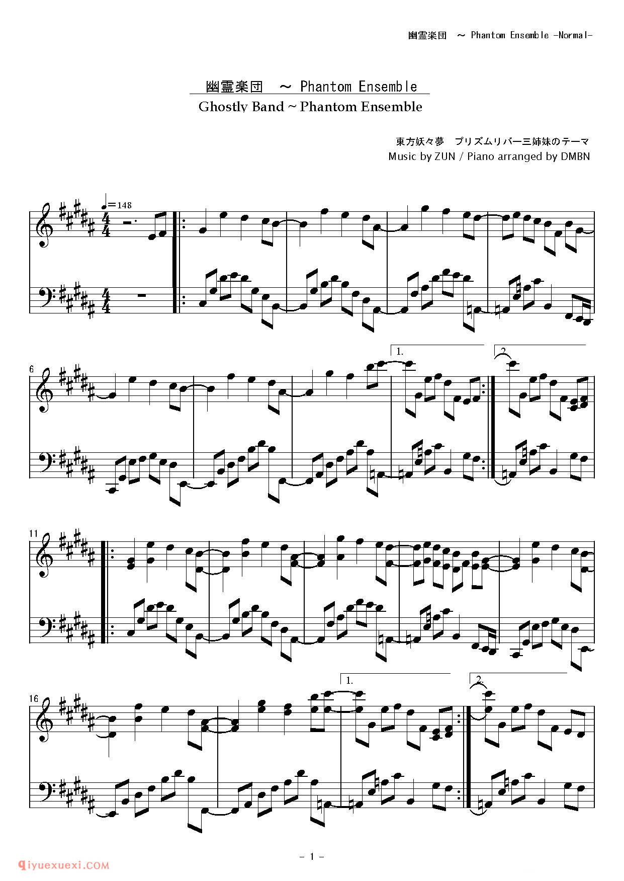 [東方ピアノEasyモード][normal][4]_幽靈楽団~Phantom Ensemble_东方(project)钢琴谱