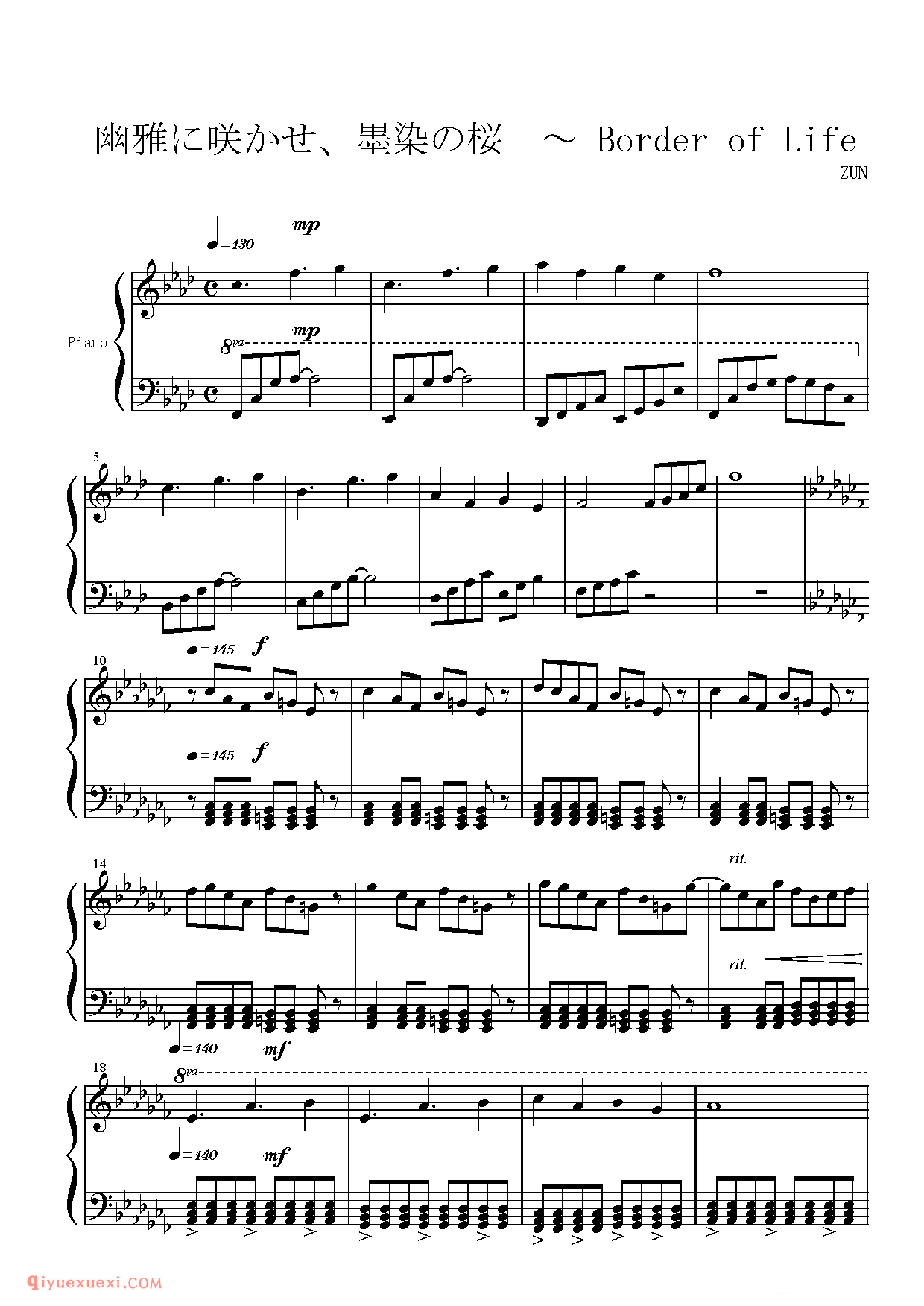 [物置小屋][hard][4]_幽雅に咲かせ、墨染の桜~Border of Life_东方(project)钢琴谱